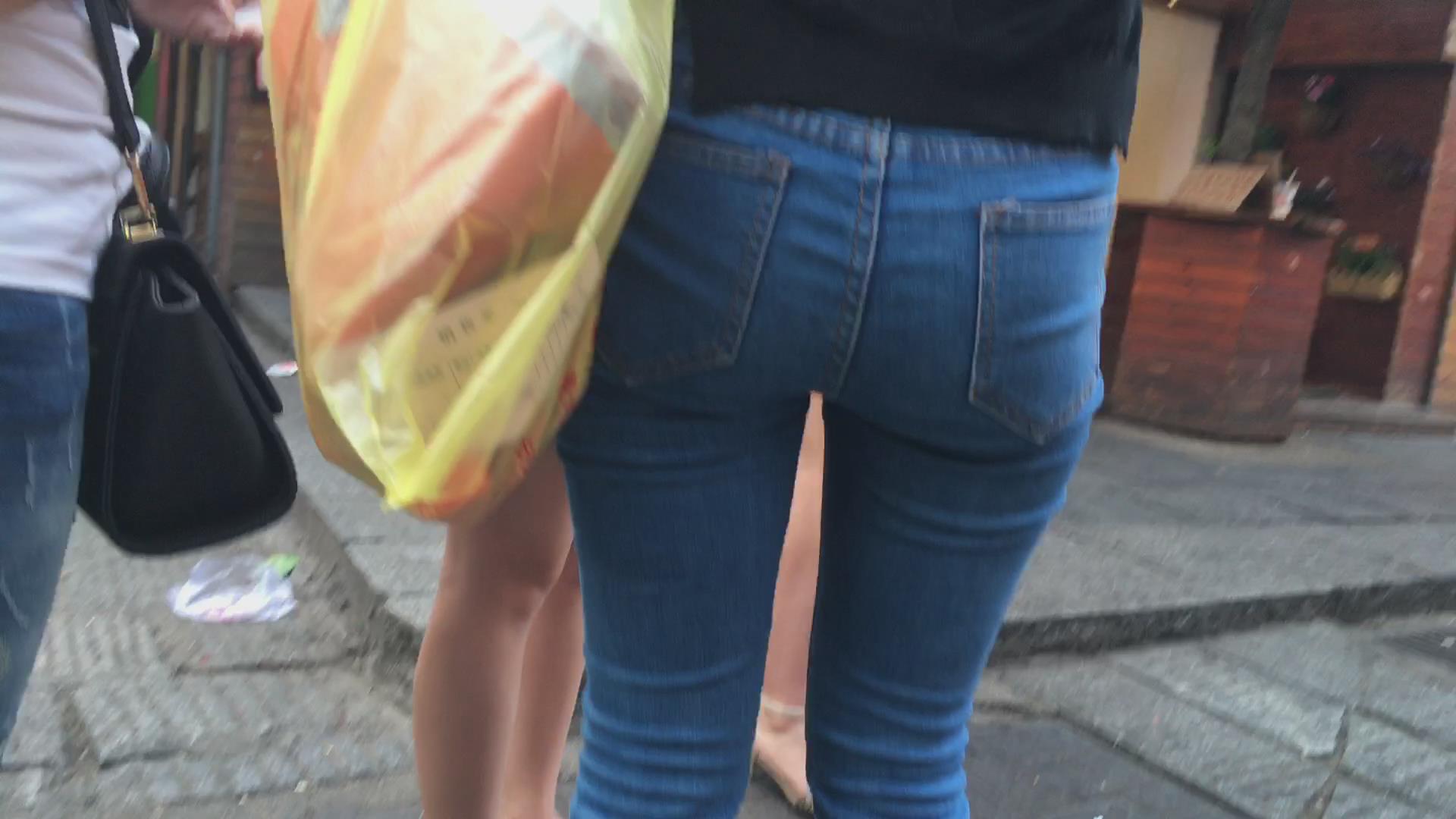 街拍蓝色牛仔裤美臀MM 编号5629 |