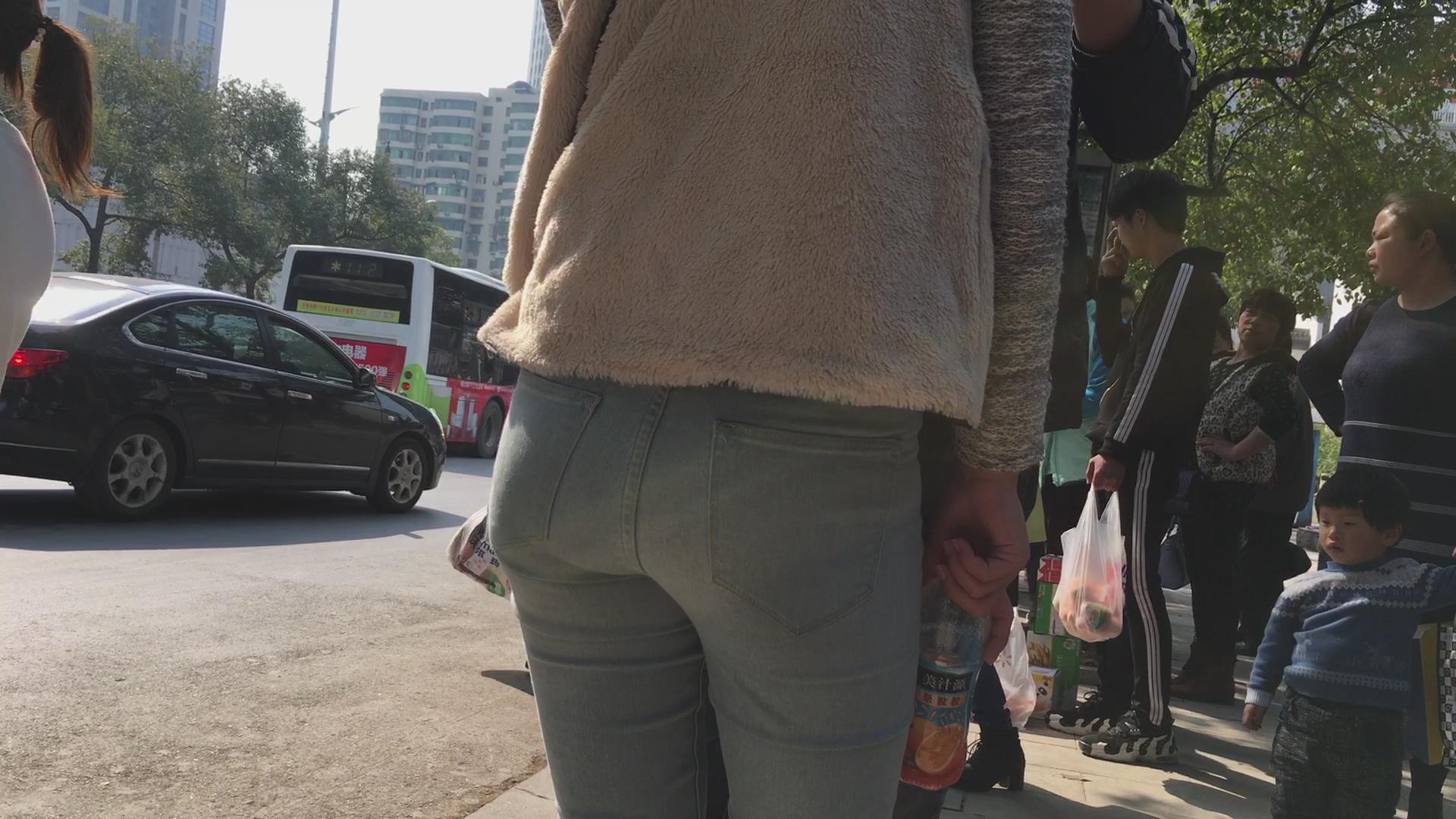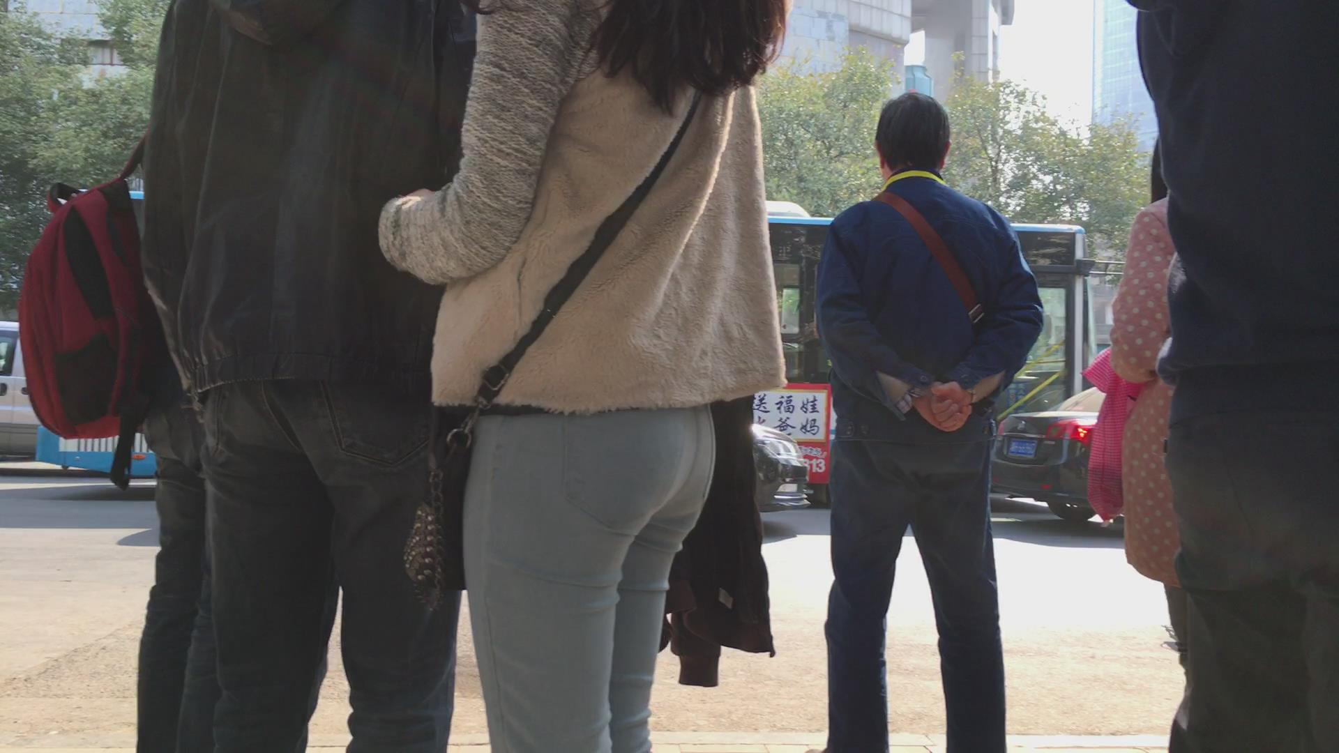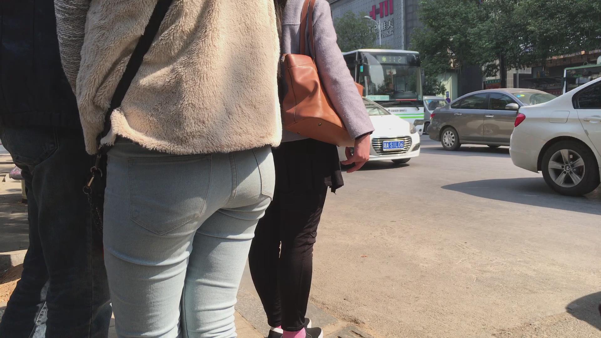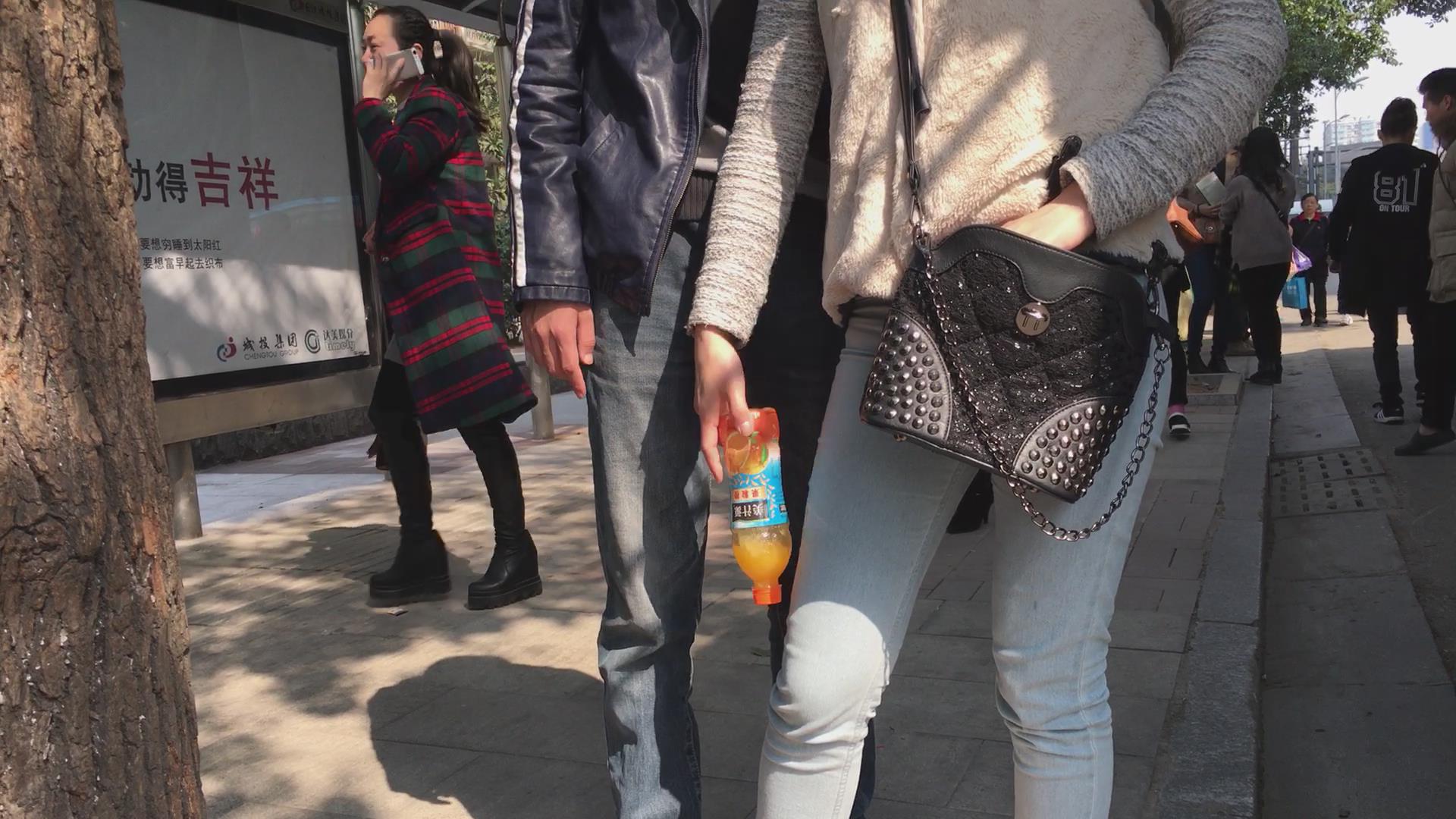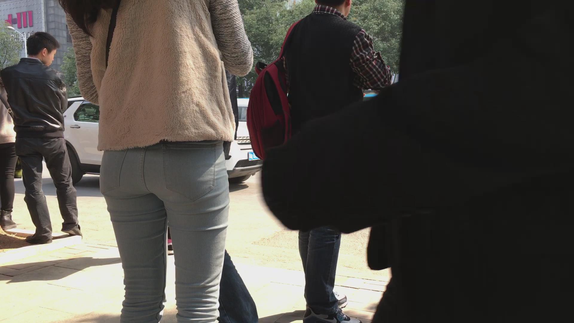 街拍蓝色紧身牛仔裤学生妹 编号5631 |