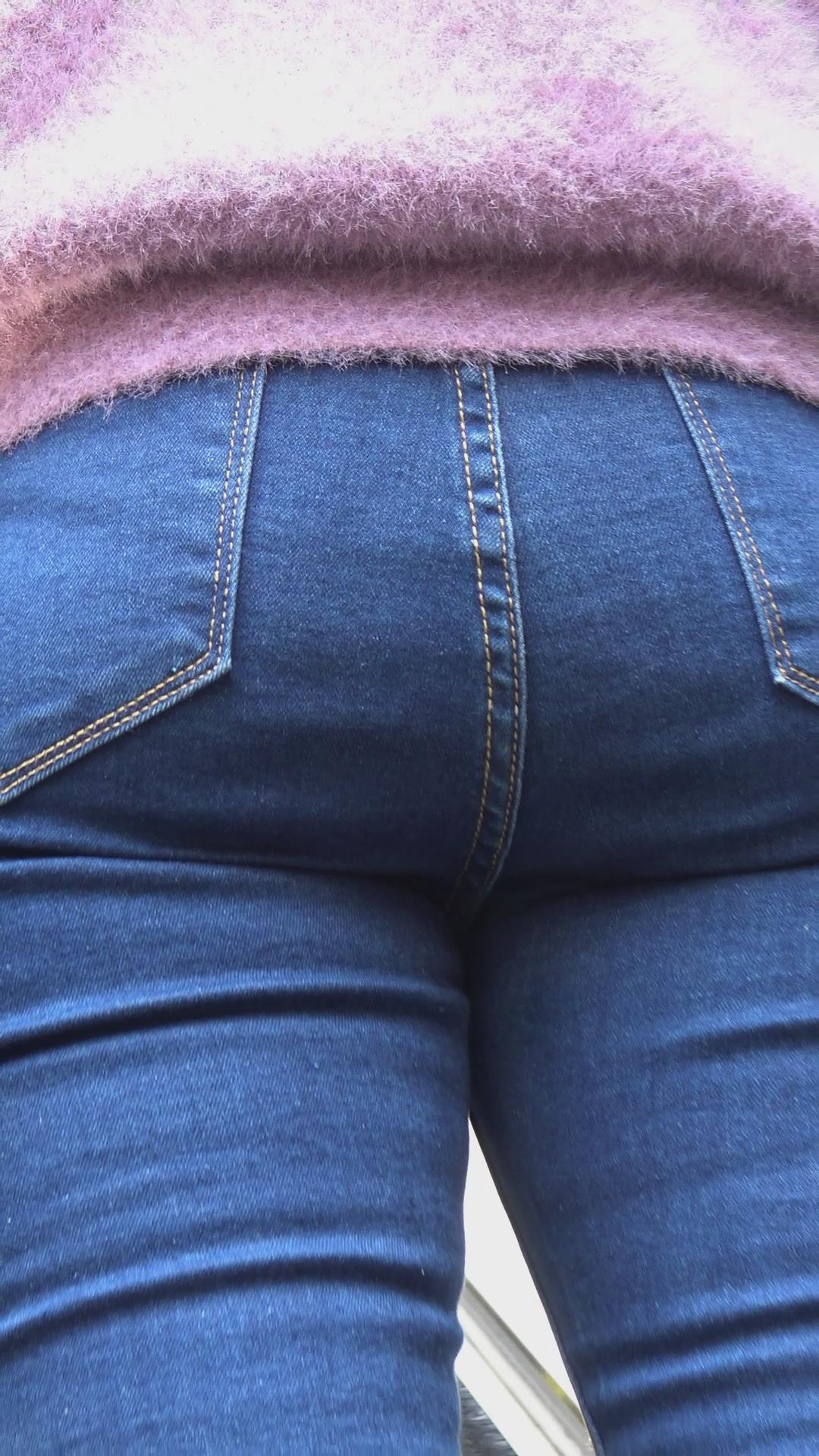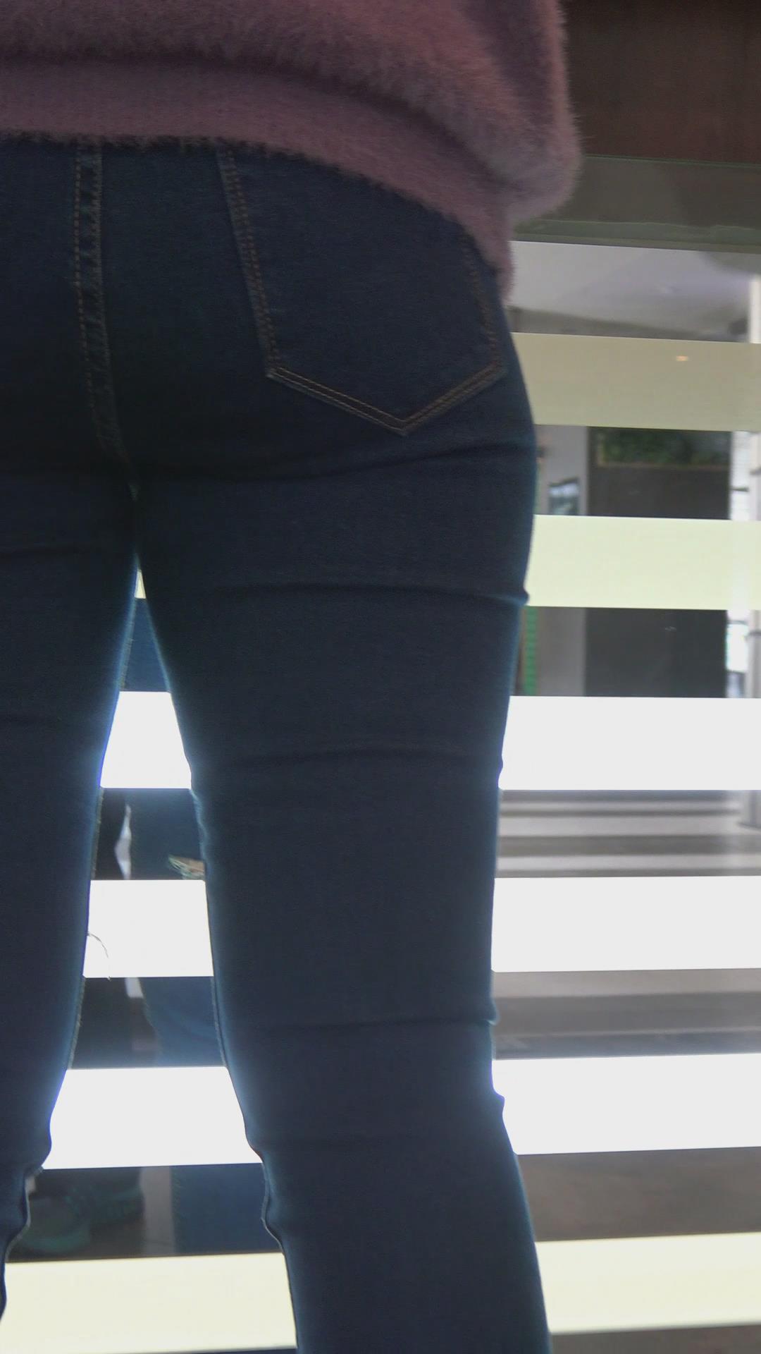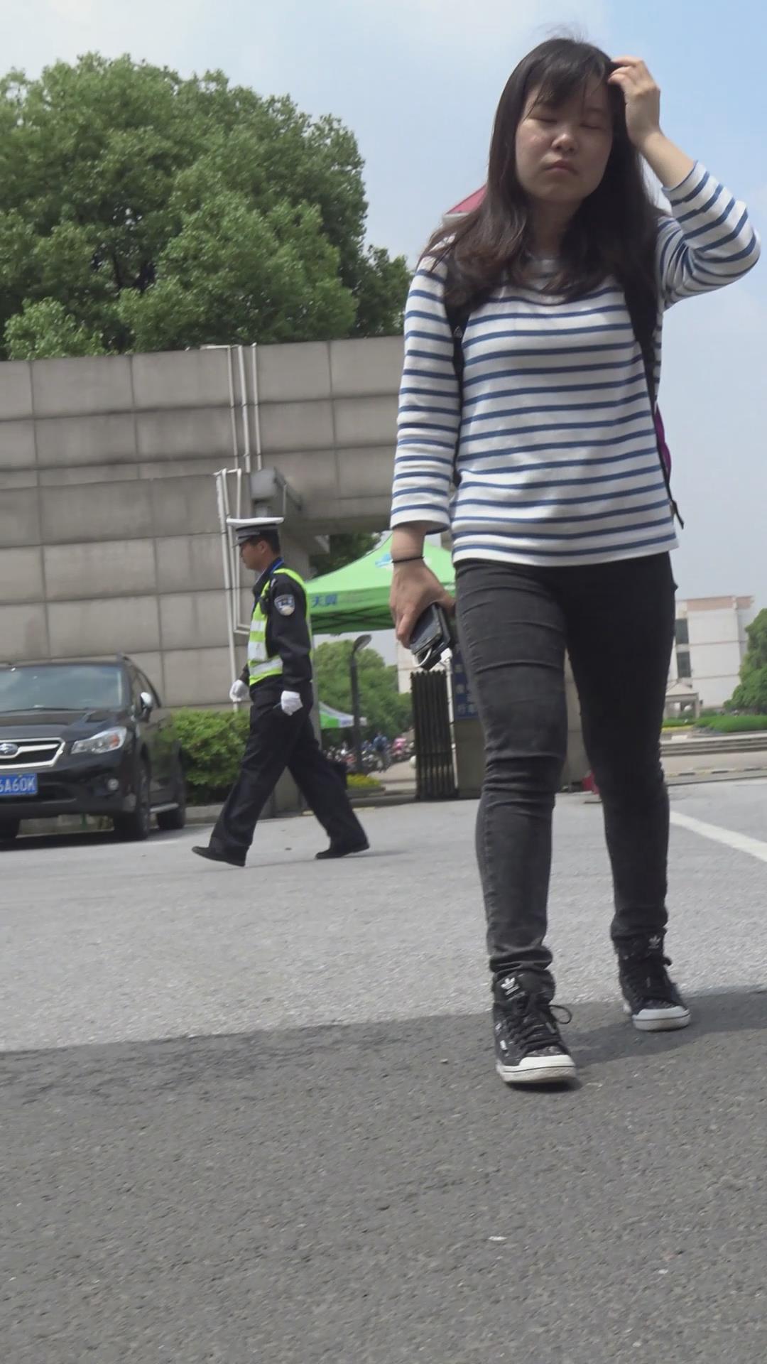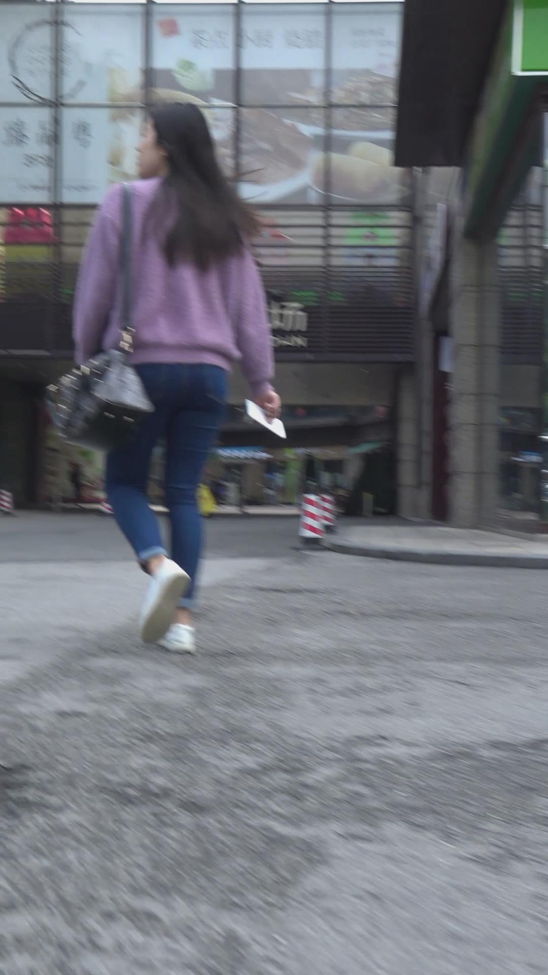 街拍宽臀蓝色紧身牛仔裤美女 编号5665 |