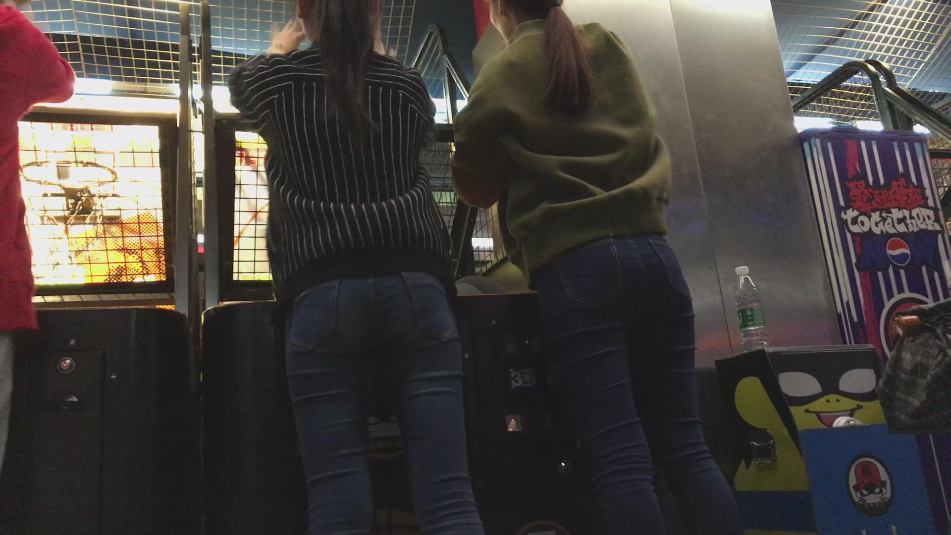 紧身蓝牛姐妹花电玩城玩投篮机很high啊 编号5759 |