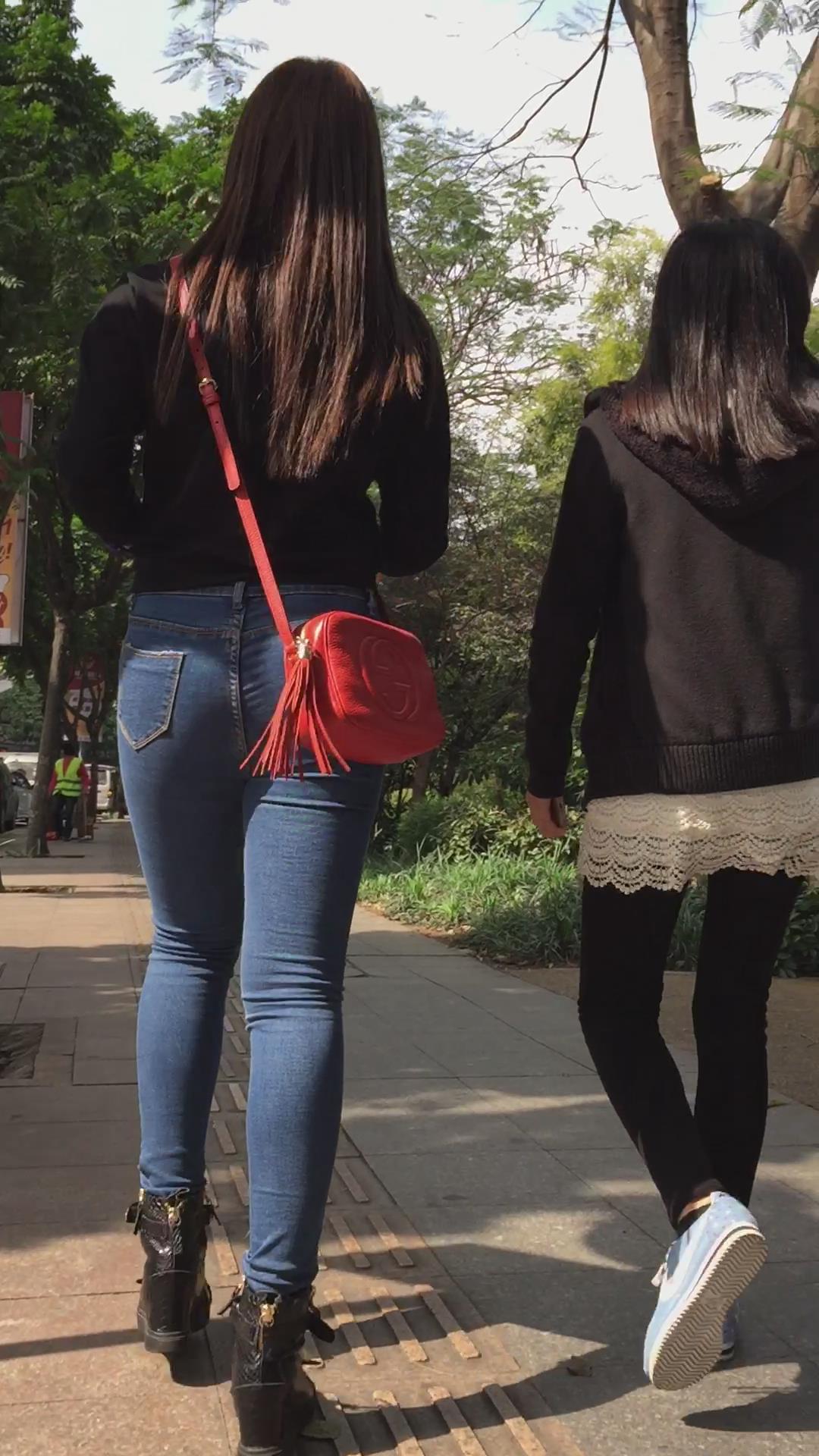 街拍紧身蓝色牛仔裤美眉 编号5879 |
