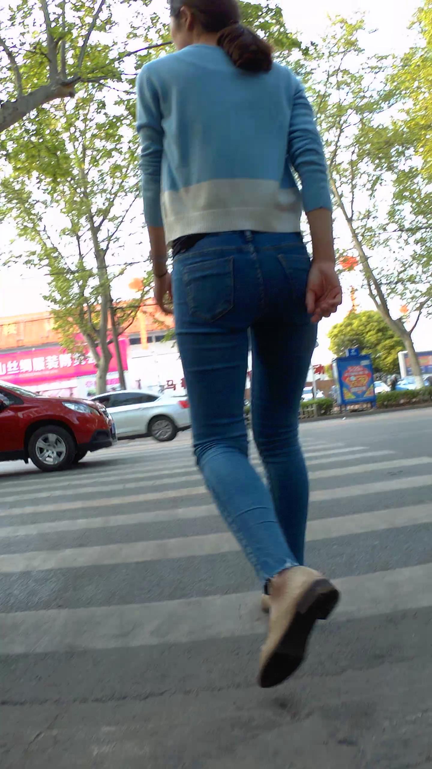 街拍紧身蓝色牛仔裤素颜良家少妇 编号5891 |