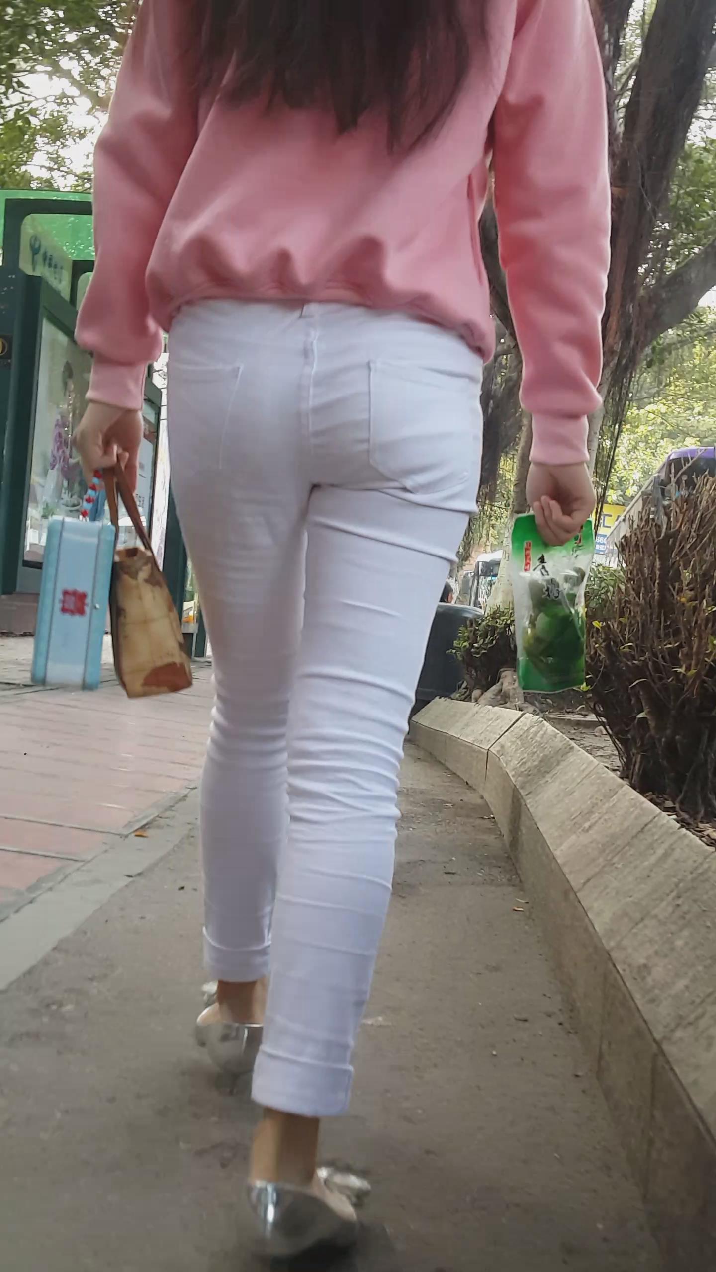 街拍紧身白裤银白高跟美女 编号5949 |
