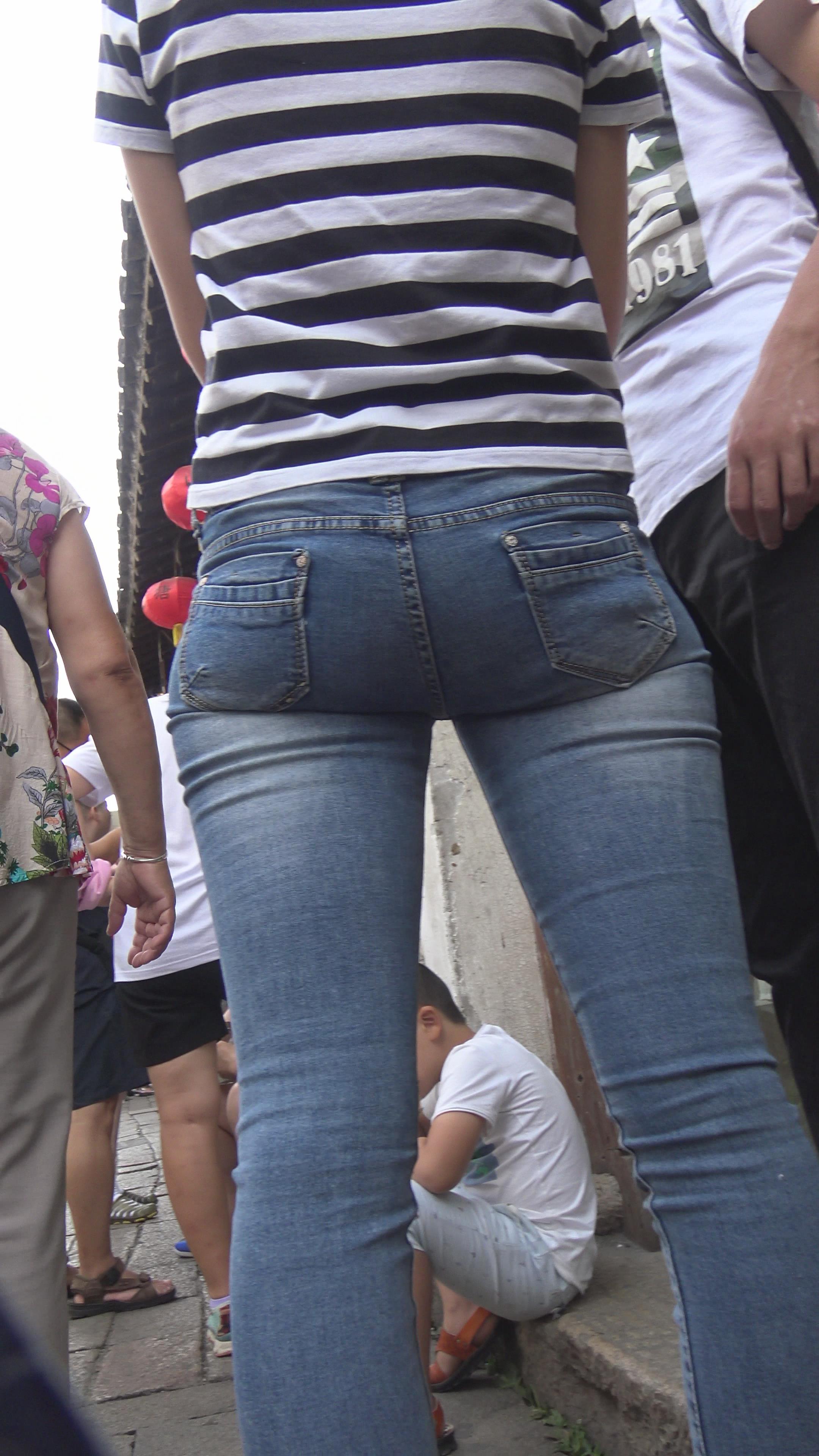 4k-街拍超级紧绷七分蓝色牛仔裤美女。 编号5975 |