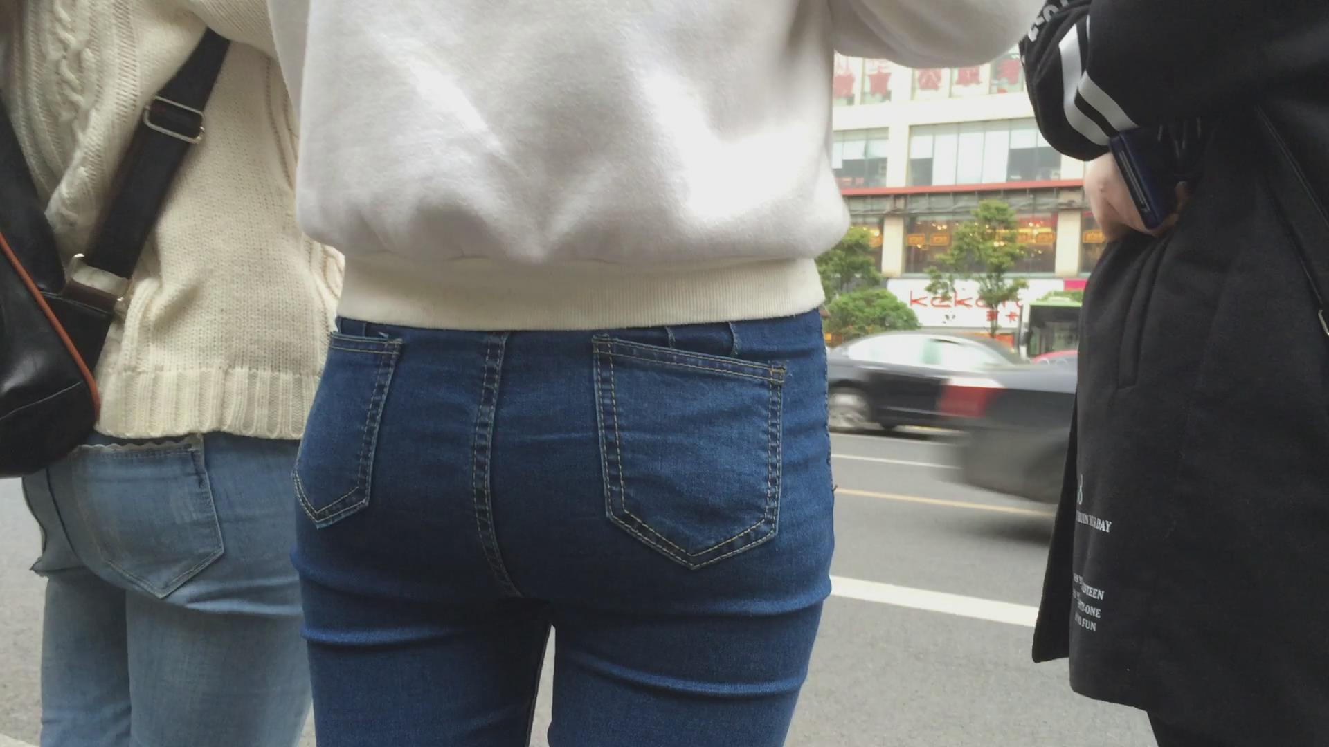 街拍路边等公交的紧身蓝色牛仔裤美女 编号6019 |