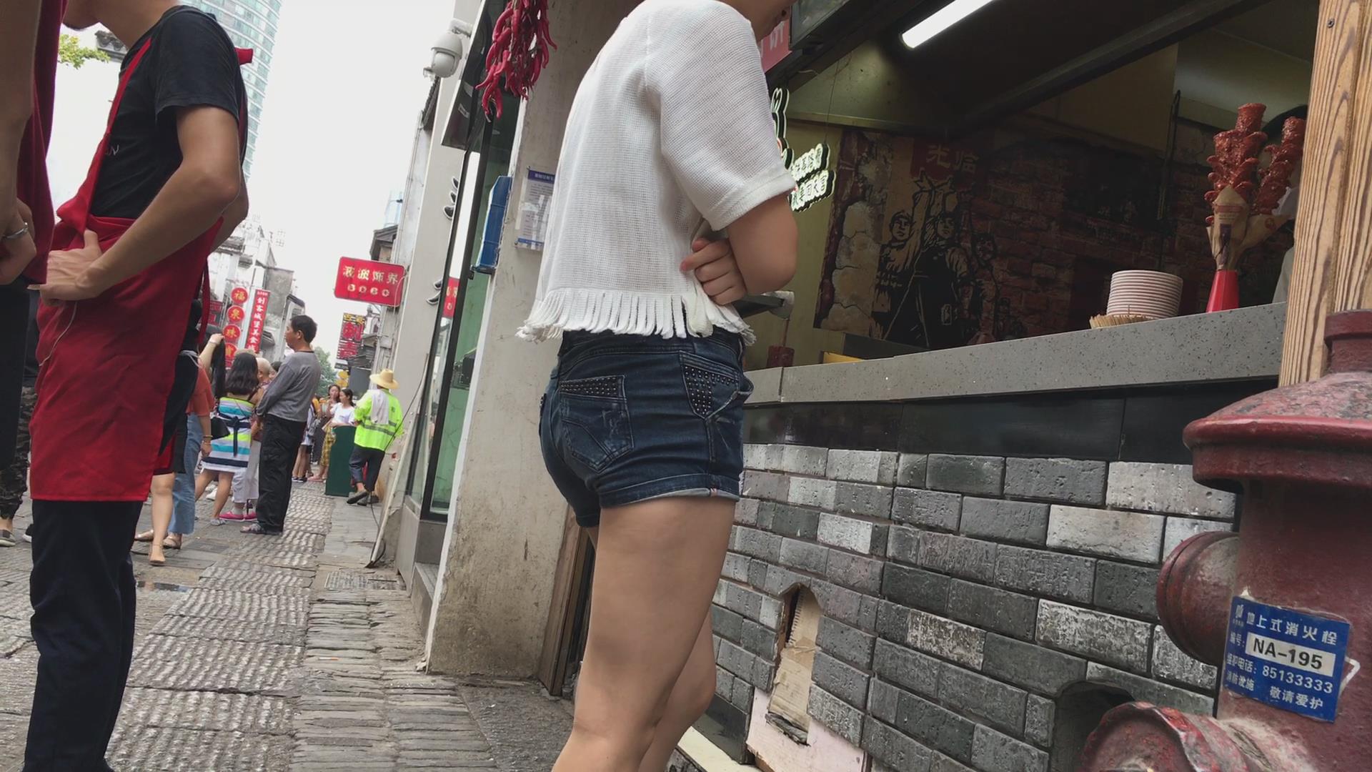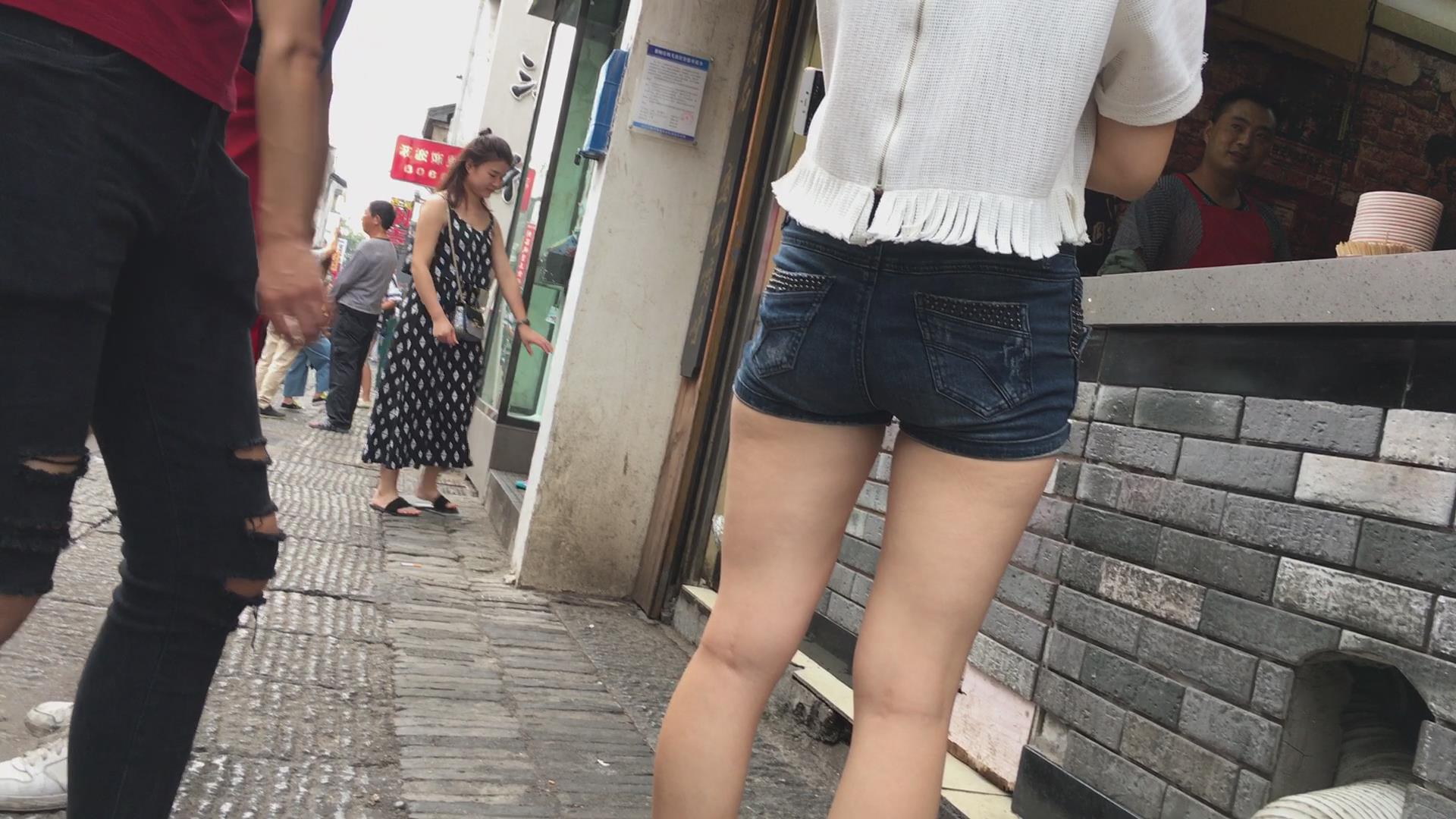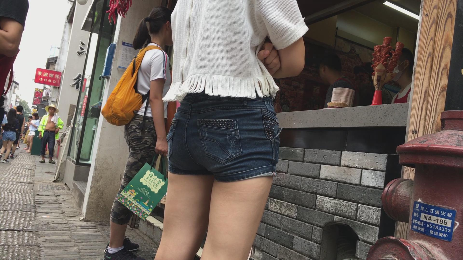 街拍牛仔短裤苹果臀美眉 编号4519 |