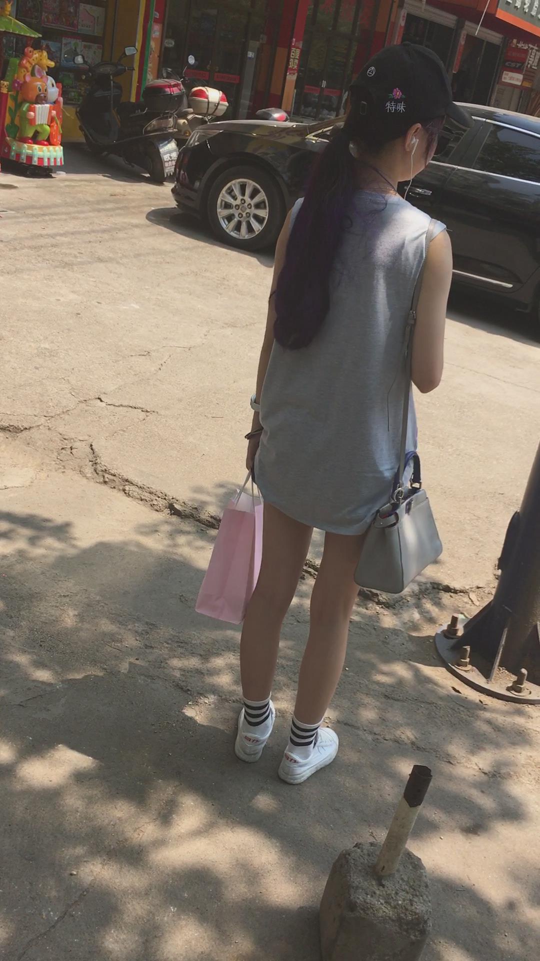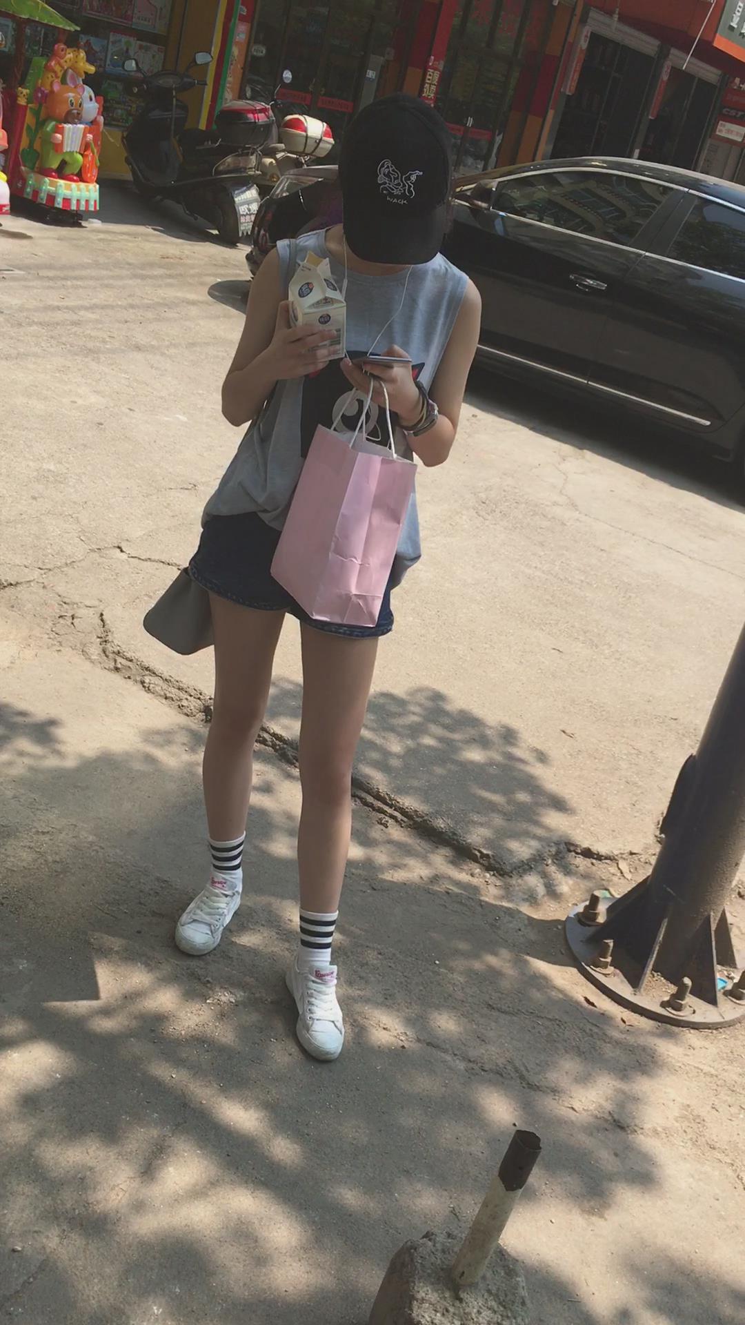 墨镜鸭舌帽牛仔热裤娇小身材街拍小美女 编号4095 |