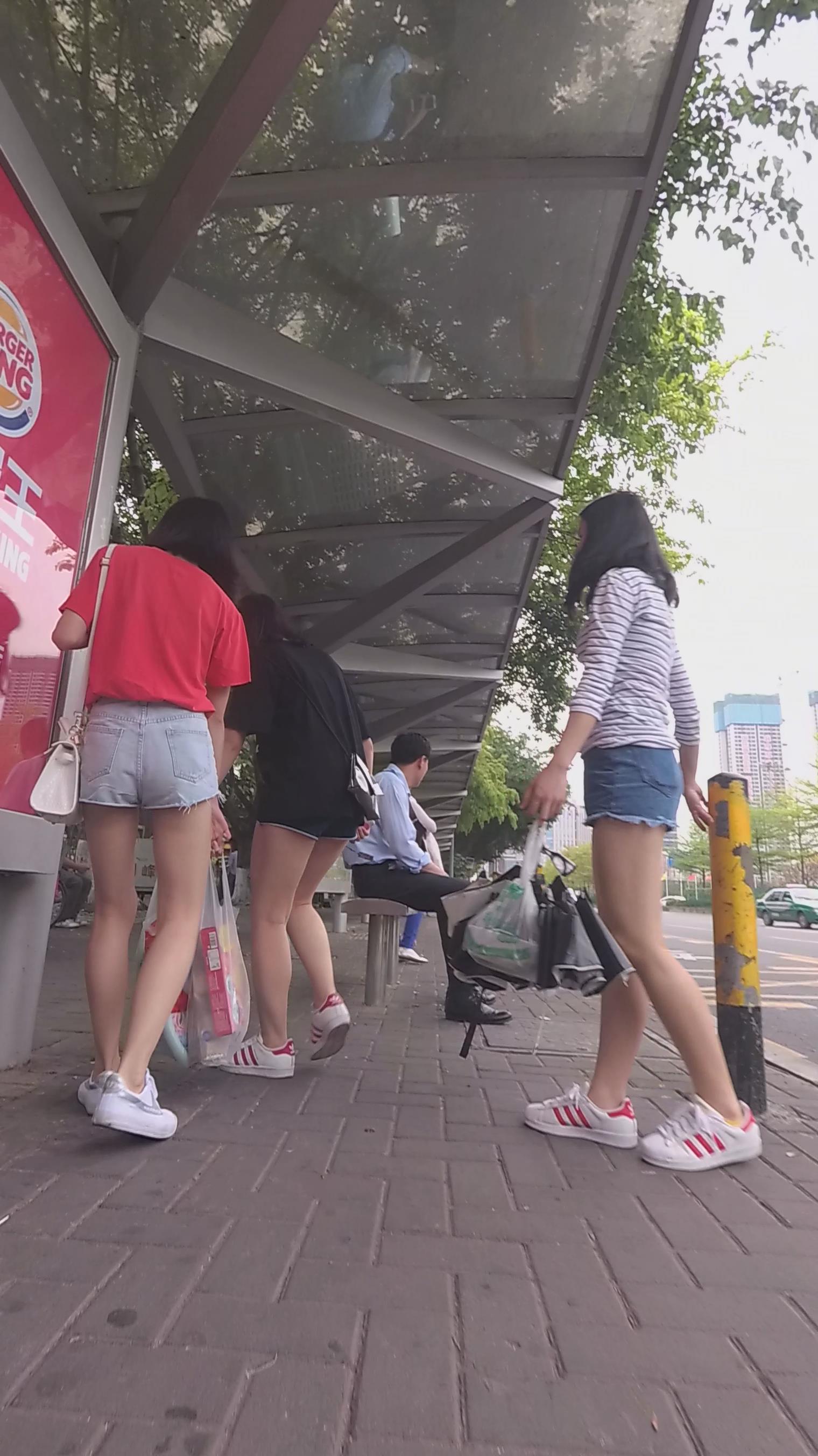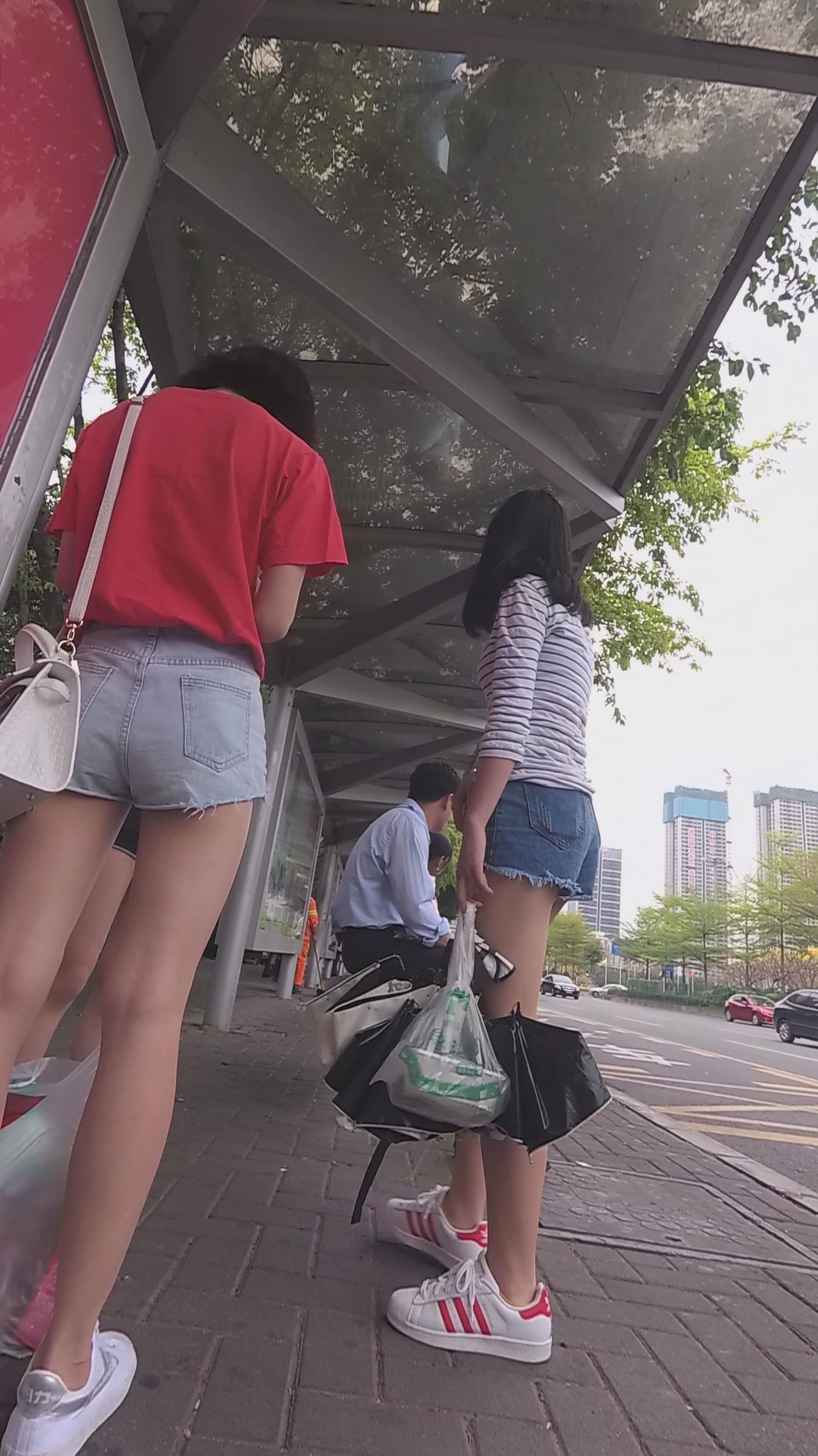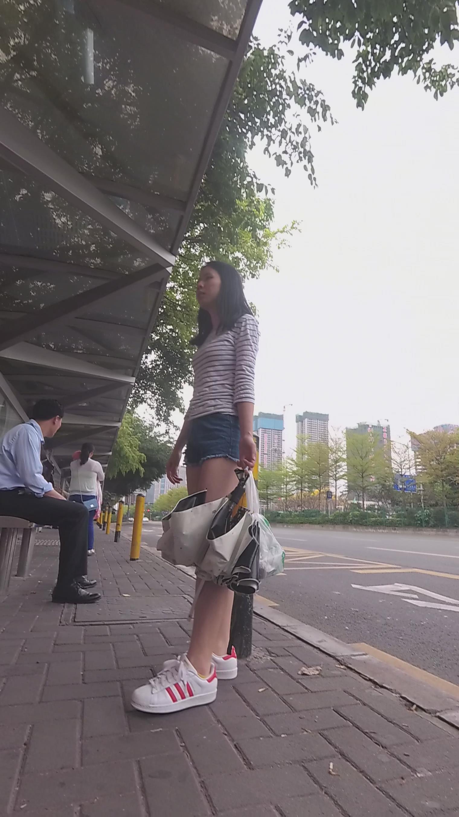 公交站等车的牛仔热裤少女 编号4473 |