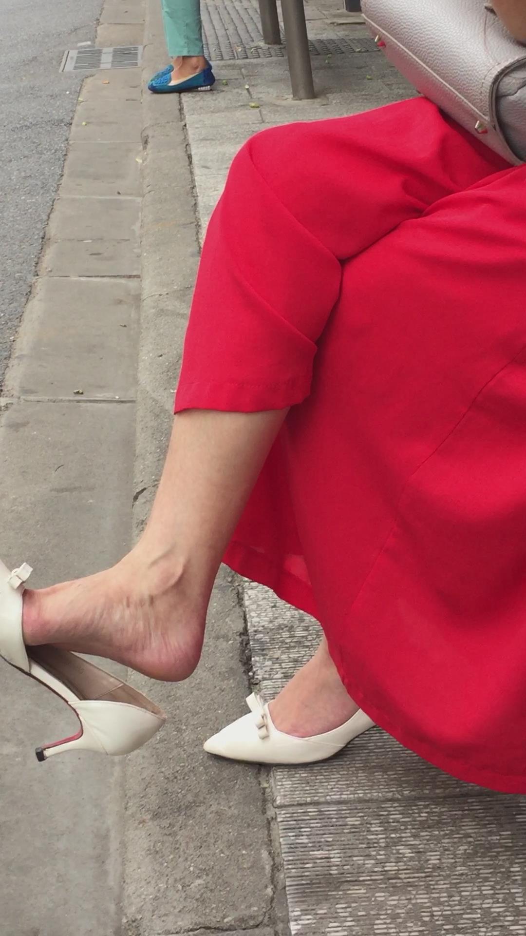公交站拍摄性感红裙御姐的尖嘴高跟粉嫩美足。 编号1753 |