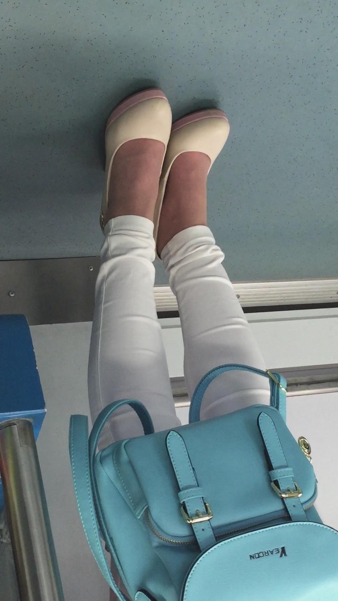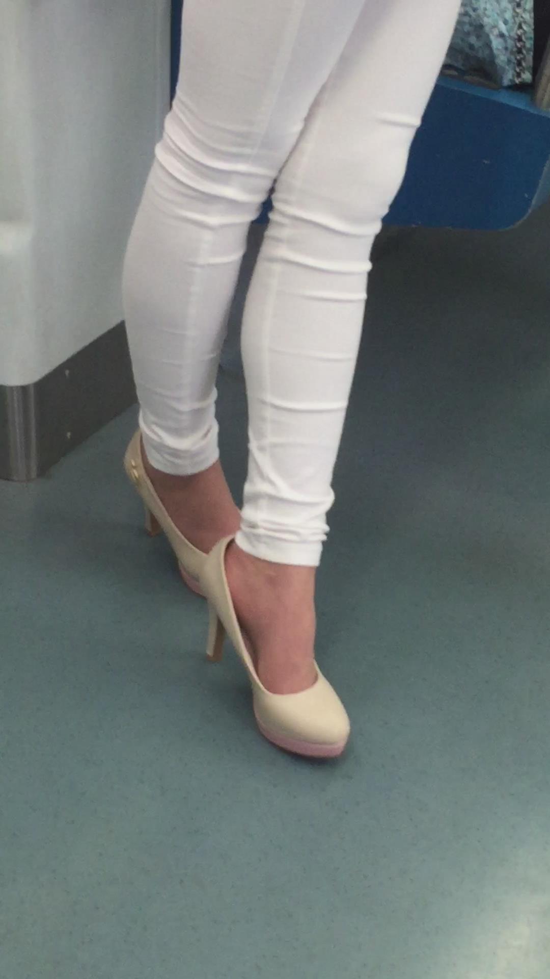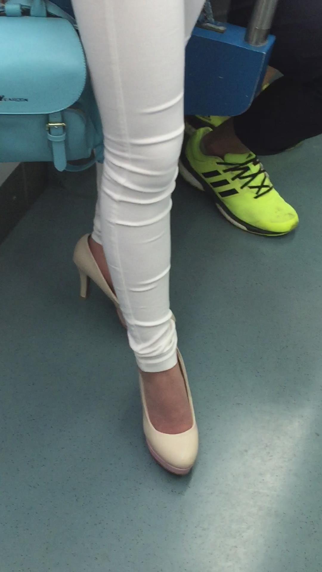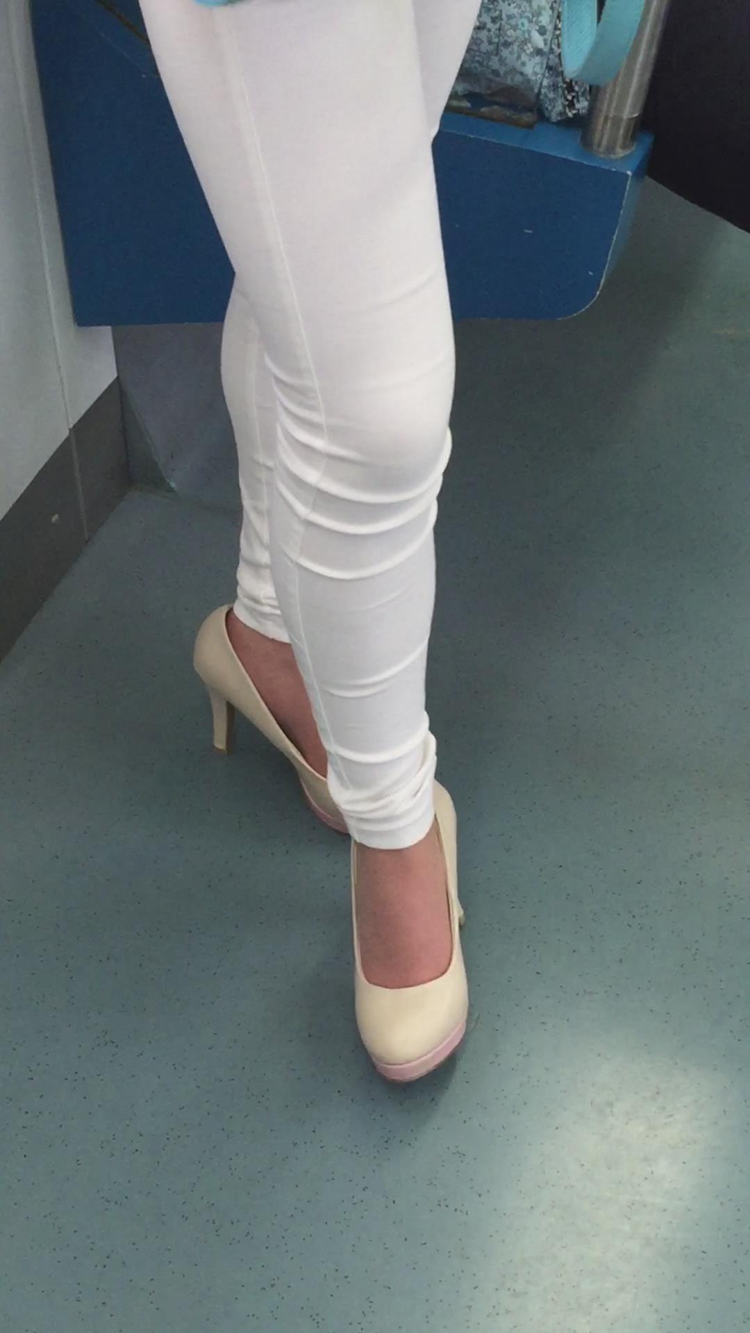 地铁拍摄粉衣紧身白裤高跟鞋女孩。 编号1762 |