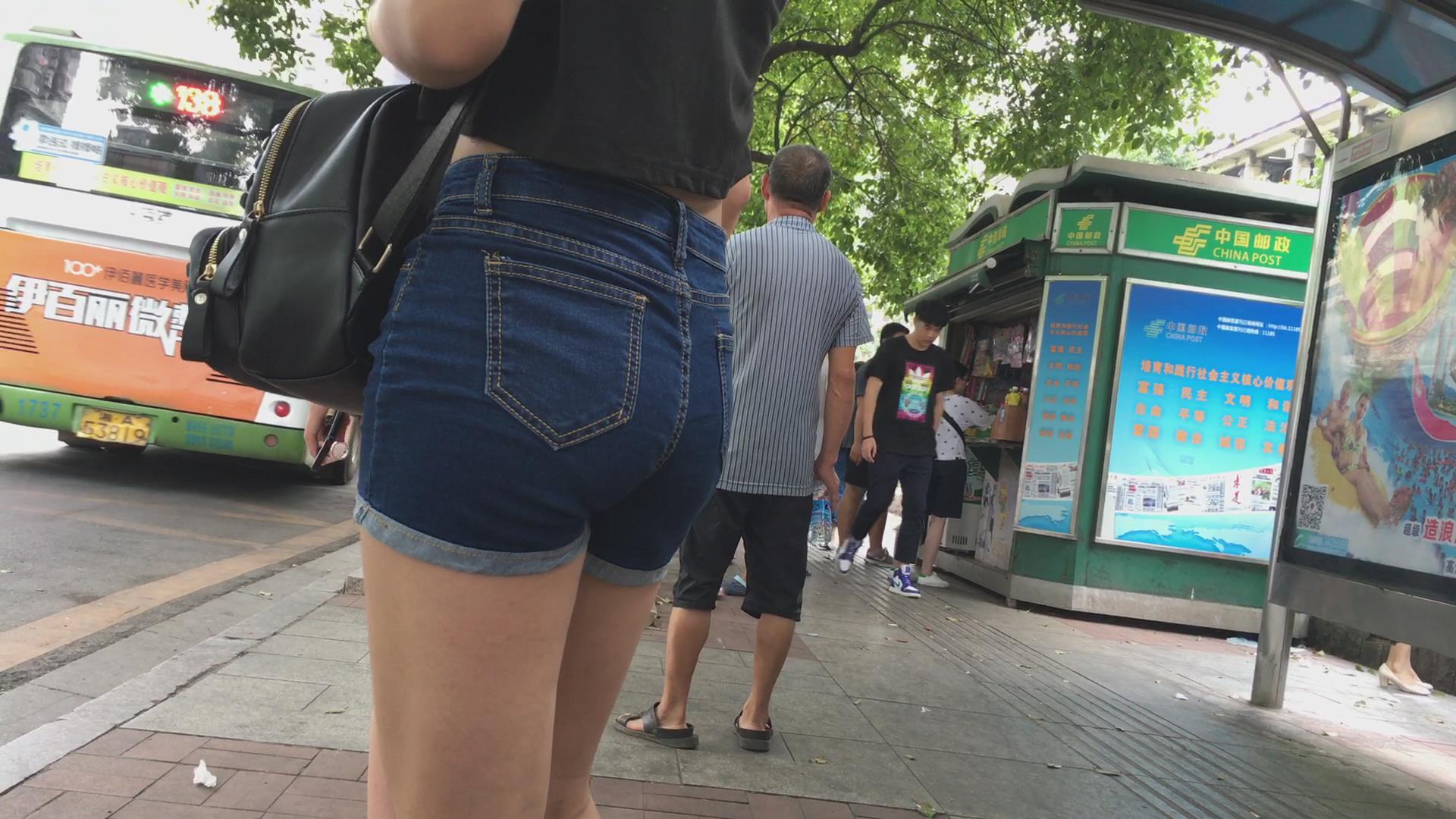 等公交的高腰牛仔热裤美臀少女。 编号4596 |