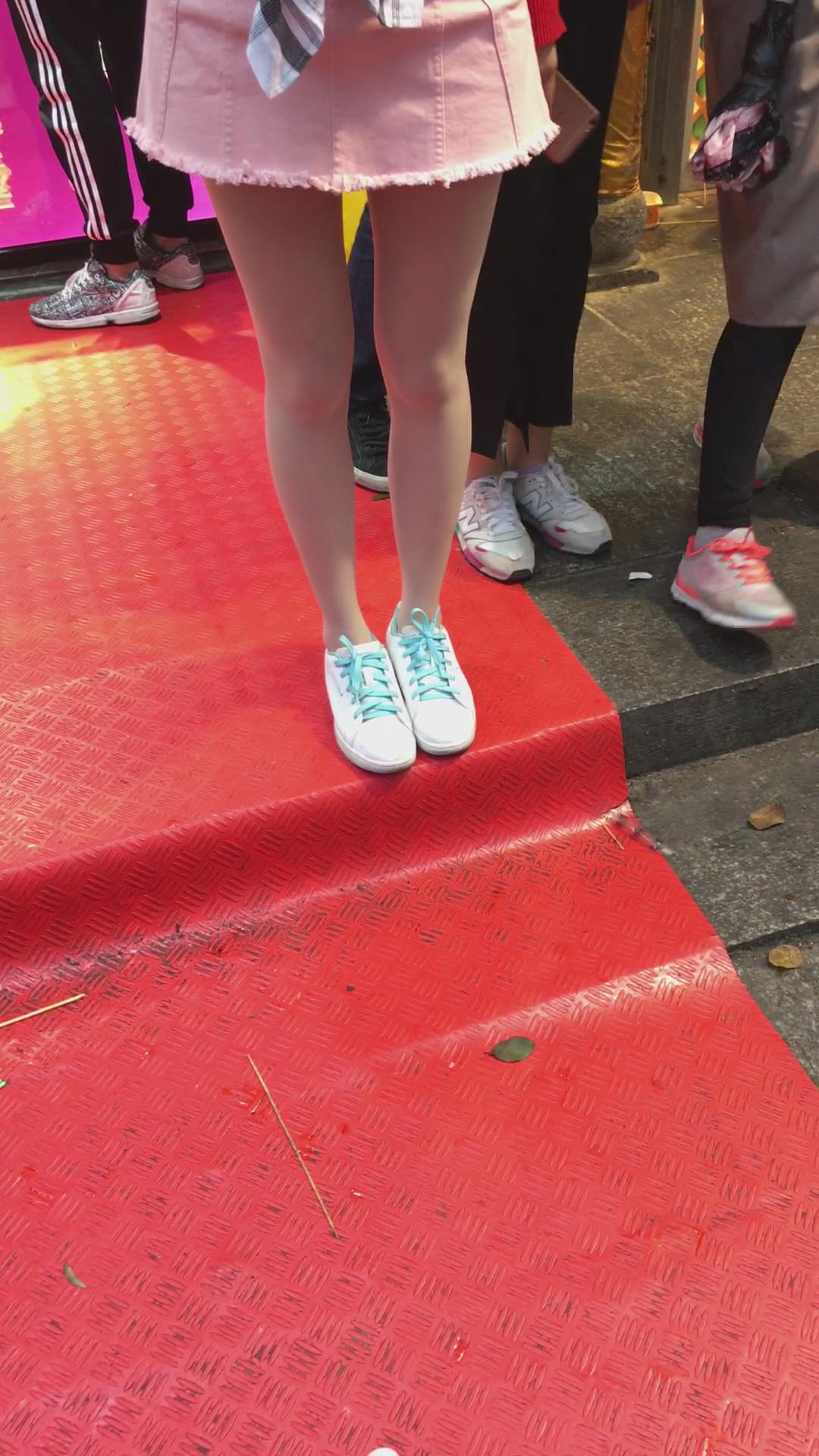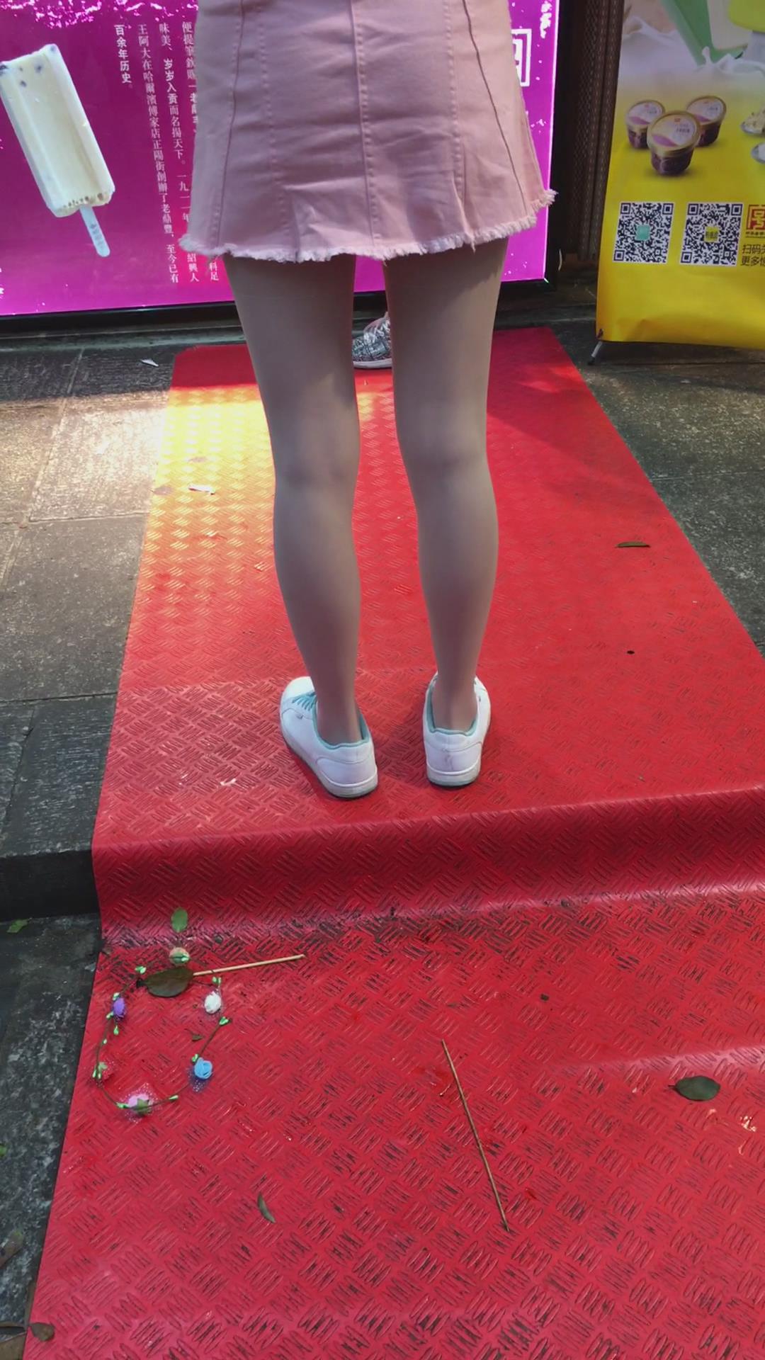 街拍粉色裙丝袜小清新MM 编号2074 |