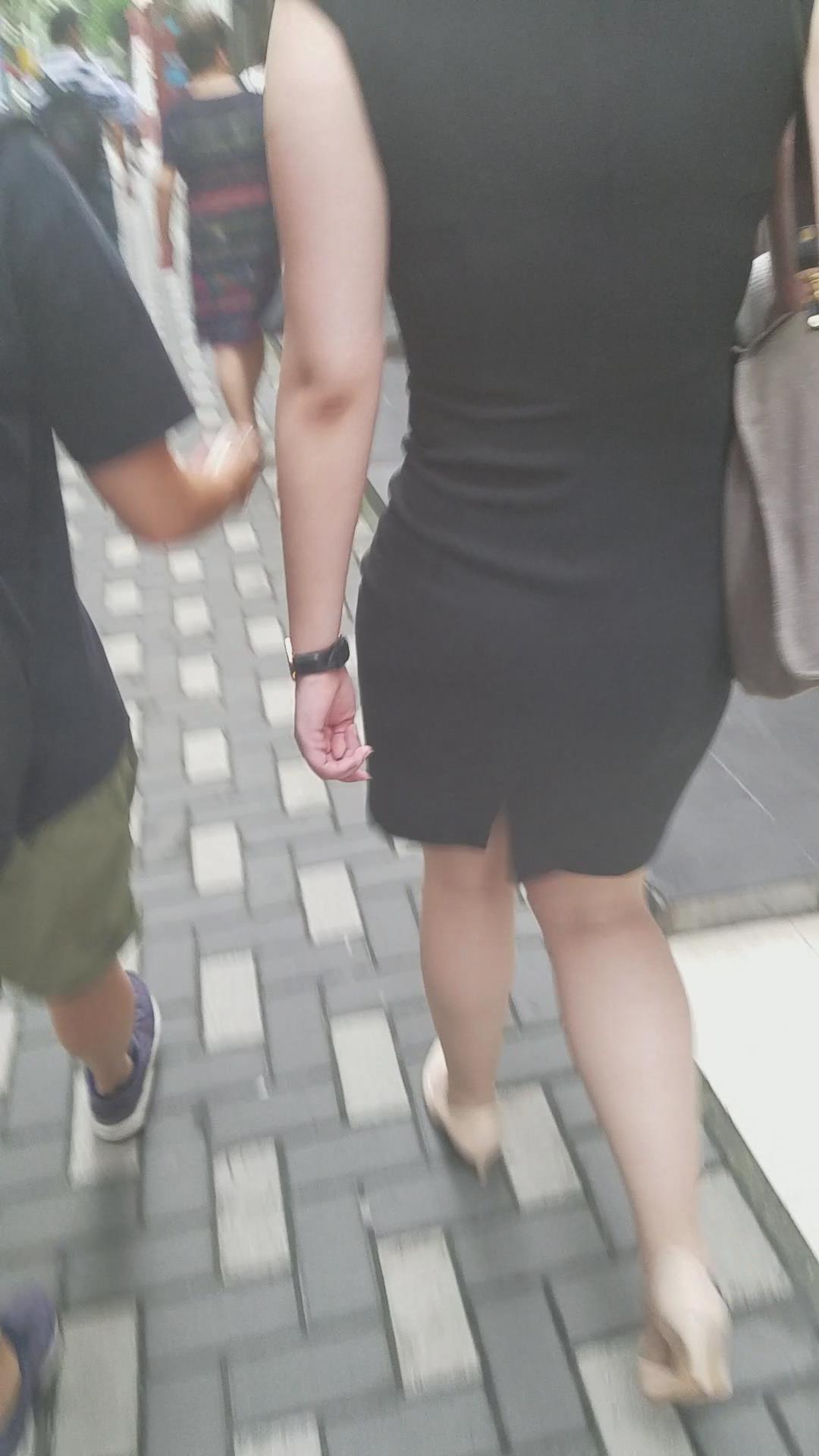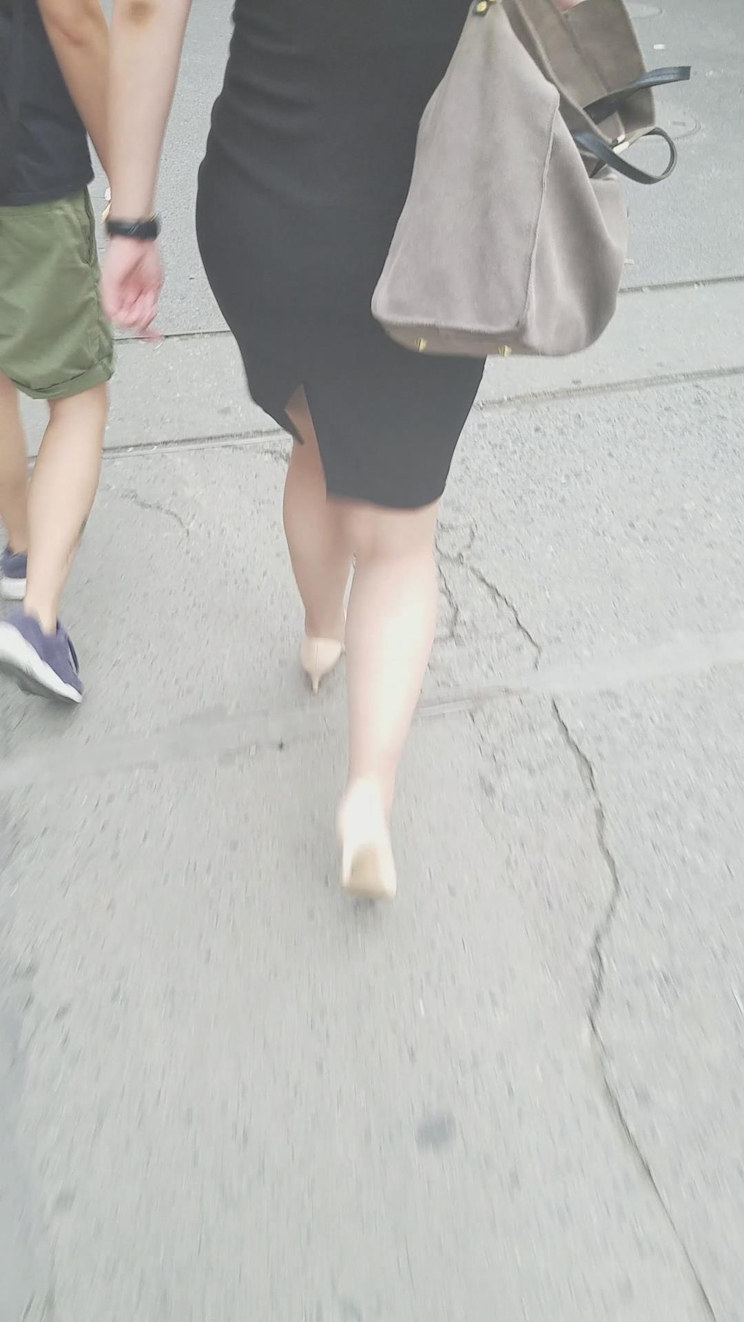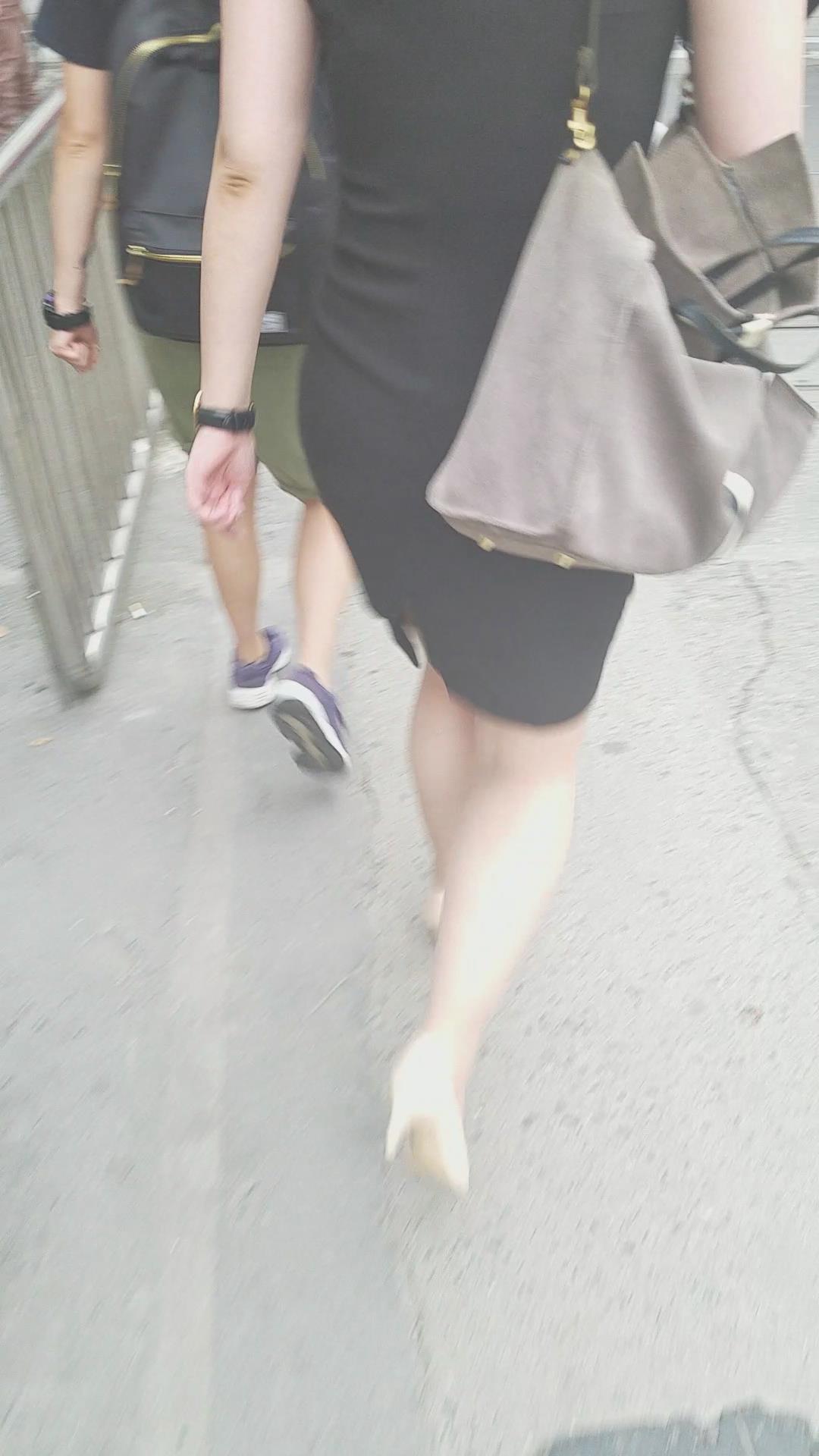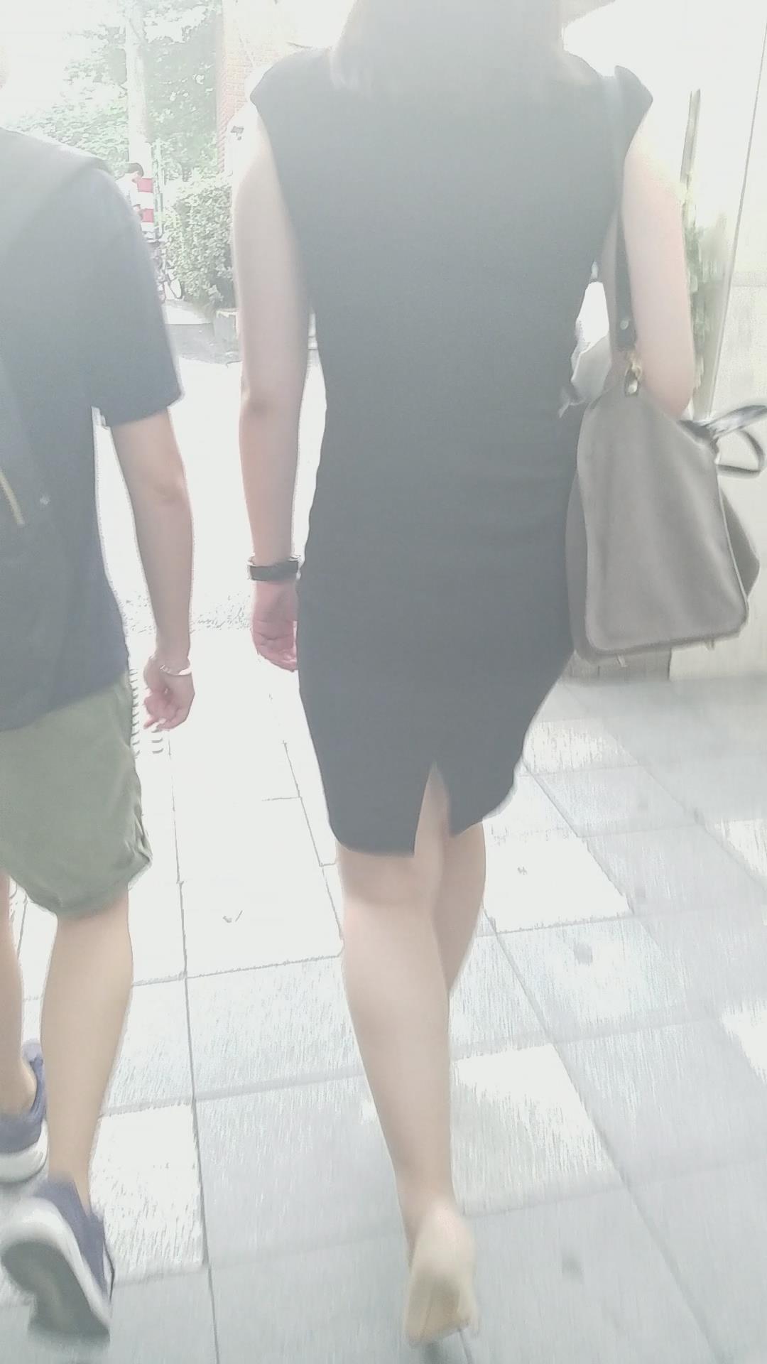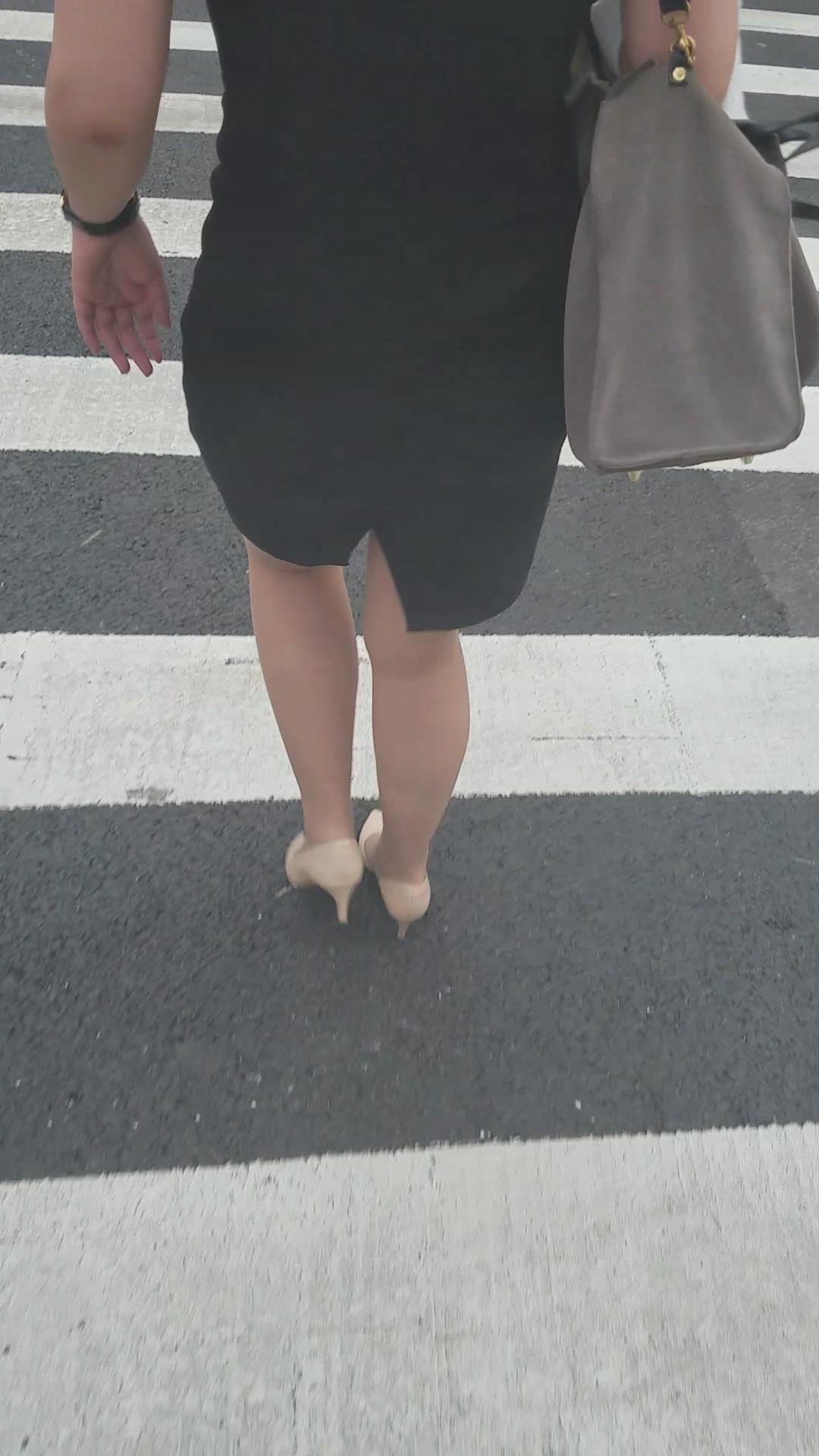 性感的黑色包臀裙米色高跟鞋美妇 编号2079 |