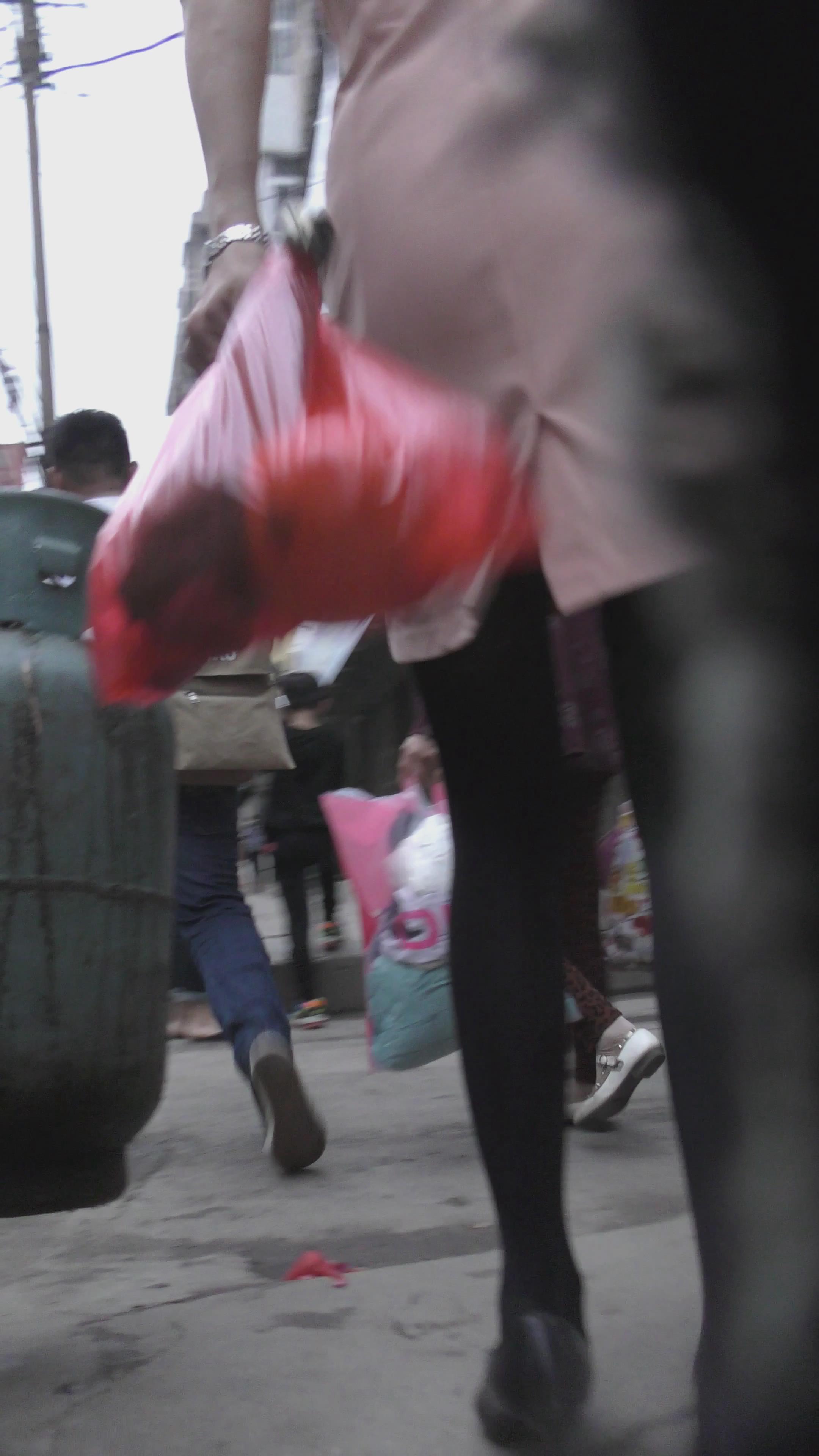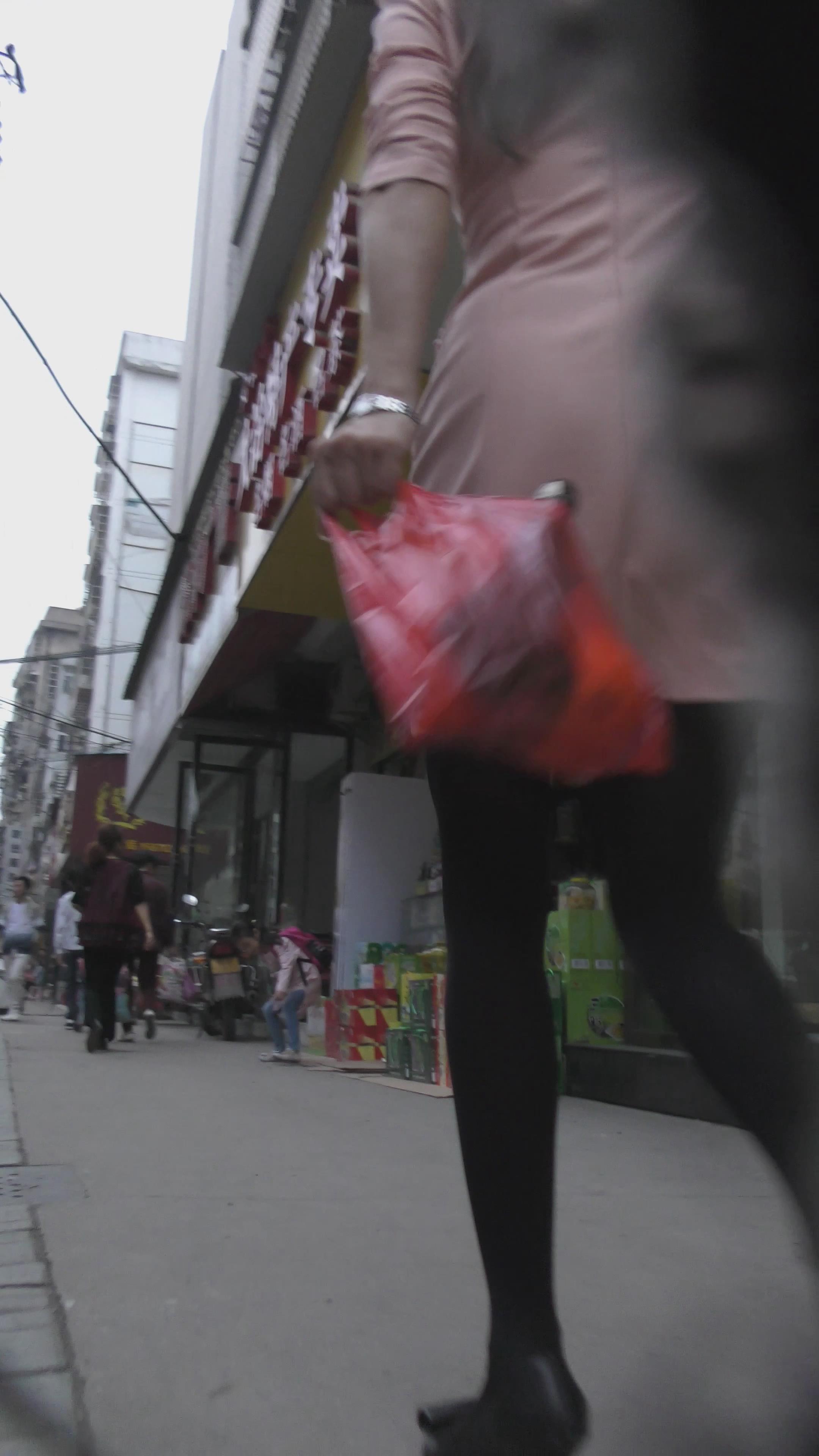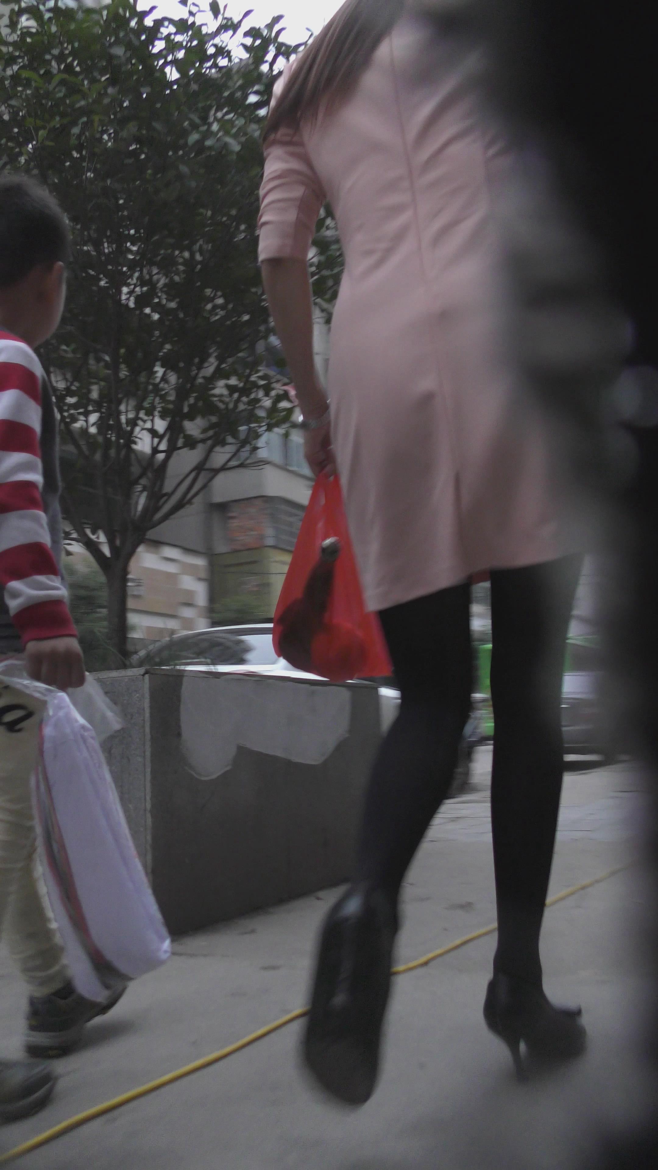 黑色打底裤粉色风衣街拍少妇 编号2174 |