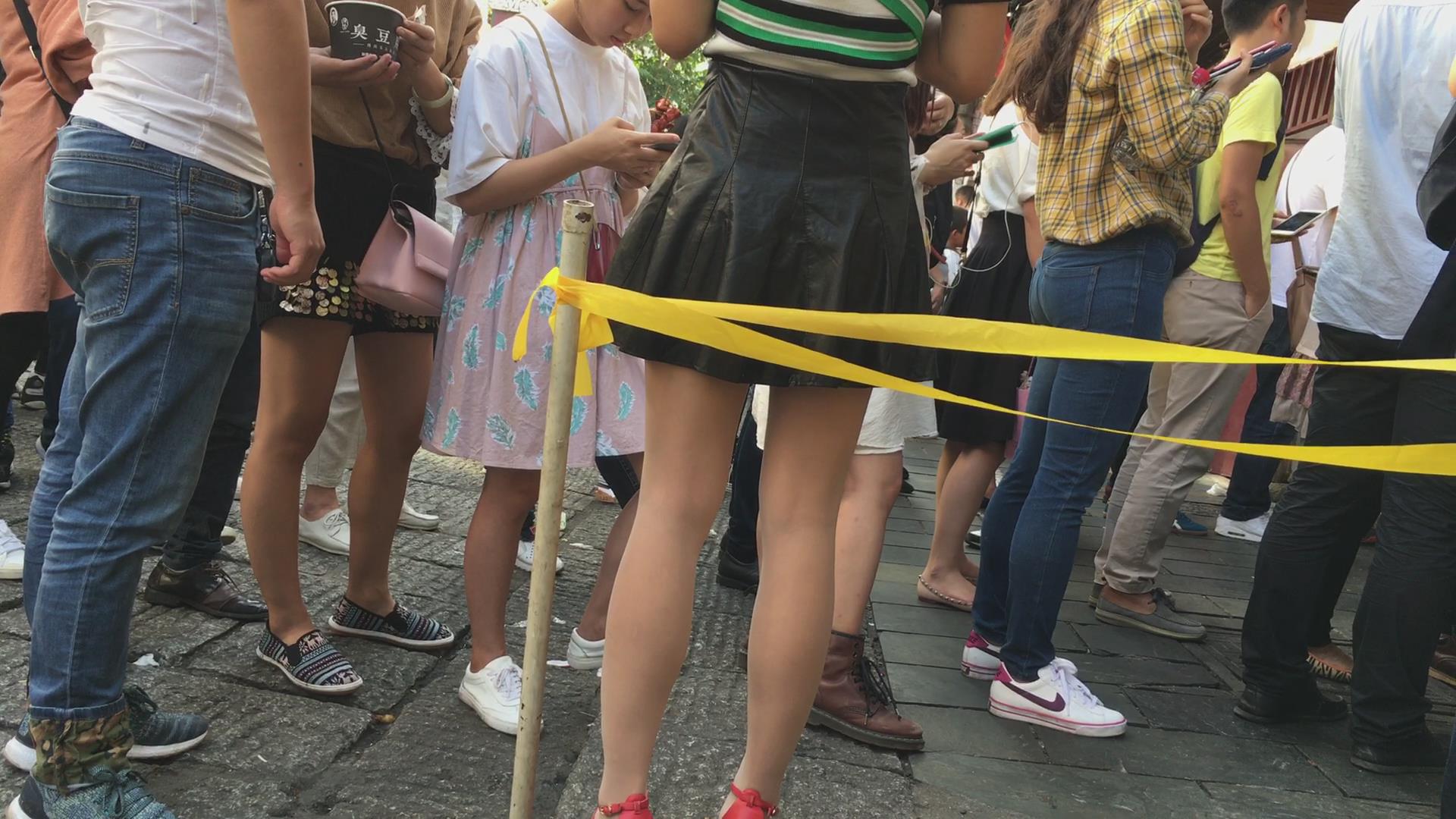 街拍短裙红色高跟鞋风骚极品美女 编号2278 |