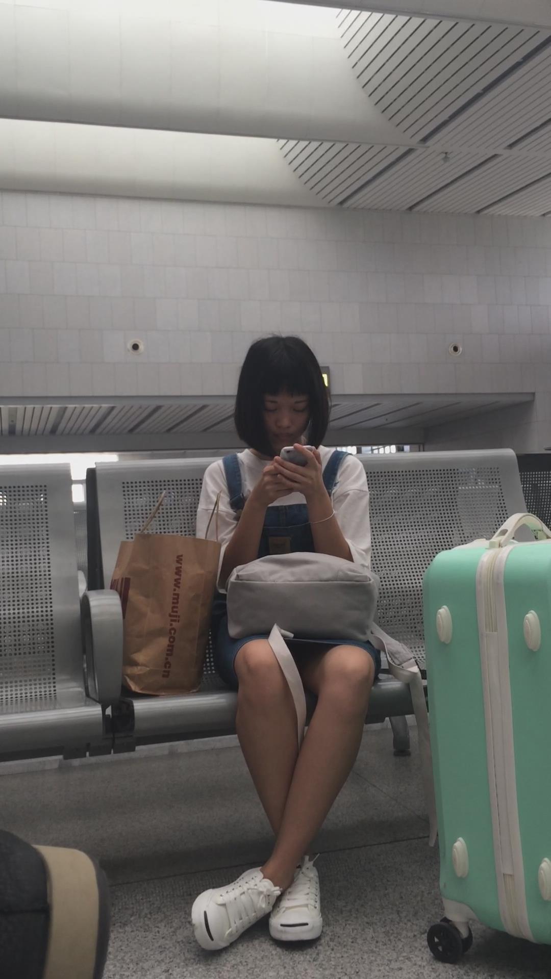 低头玩手机的吊带牛仔裙帆布鞋小清新美女 编号2345 |