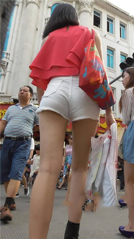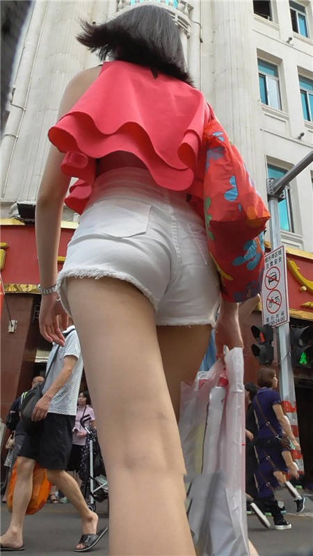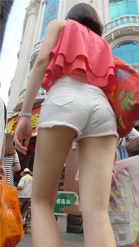 【编号696】街拍皮肤白皙的长腿白热裤MM |