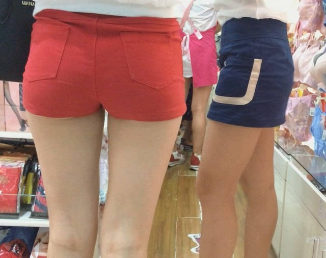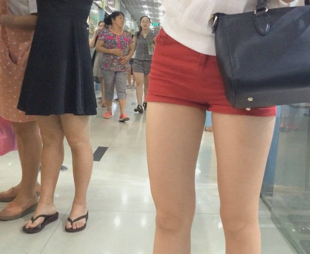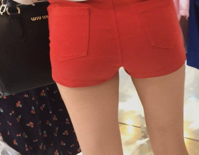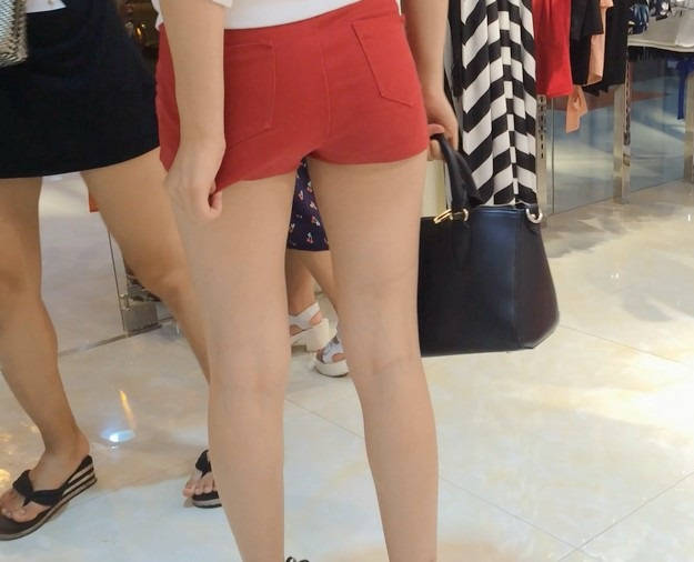 【编号853】街拍20分钟红色短裤长腿翘臀温柔MM |