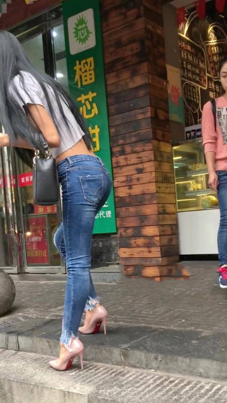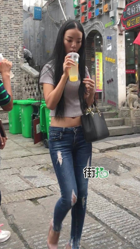 【编号1215】街拍紧身牛仔裤苗条小妹挽着谁呀 |